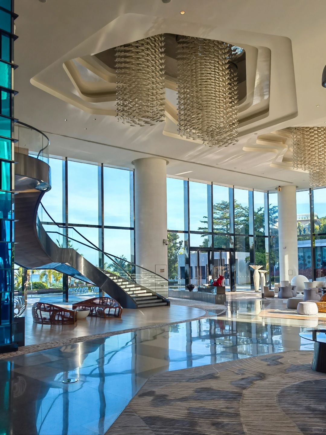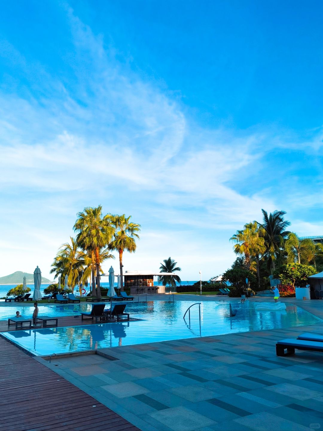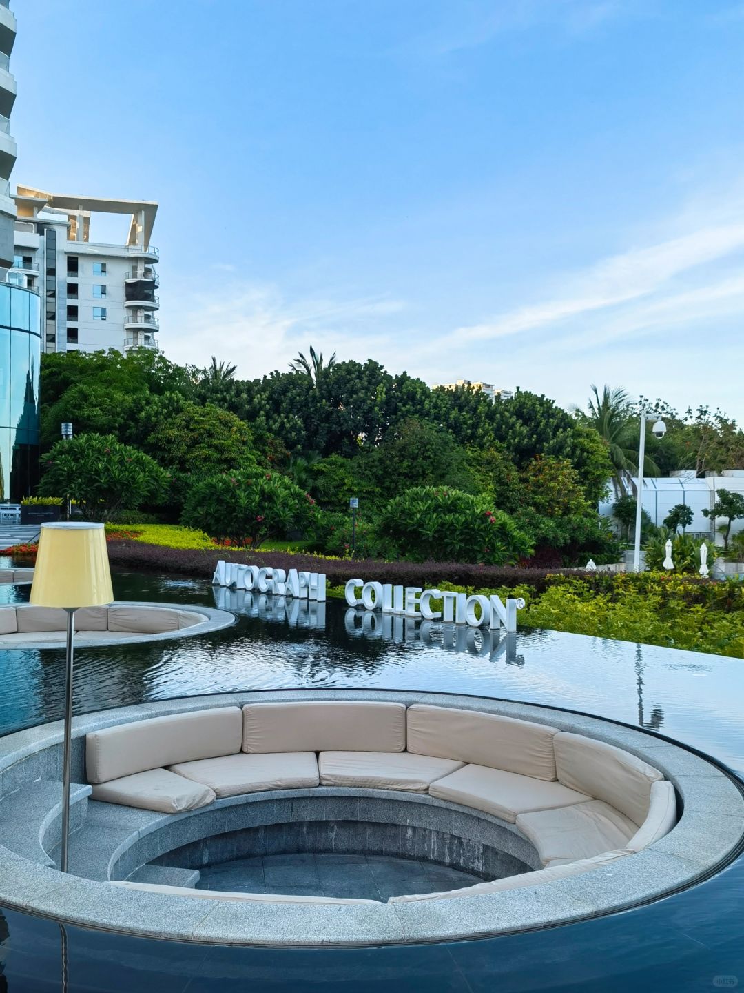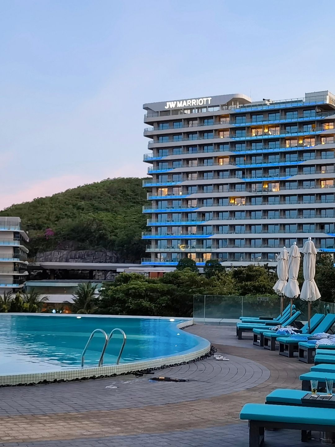 酒店和山海天jw万豪公用部分公区,泳池有好几个,楼顶的无边泳池也很出片,尤其是日落的时候,很有质感。