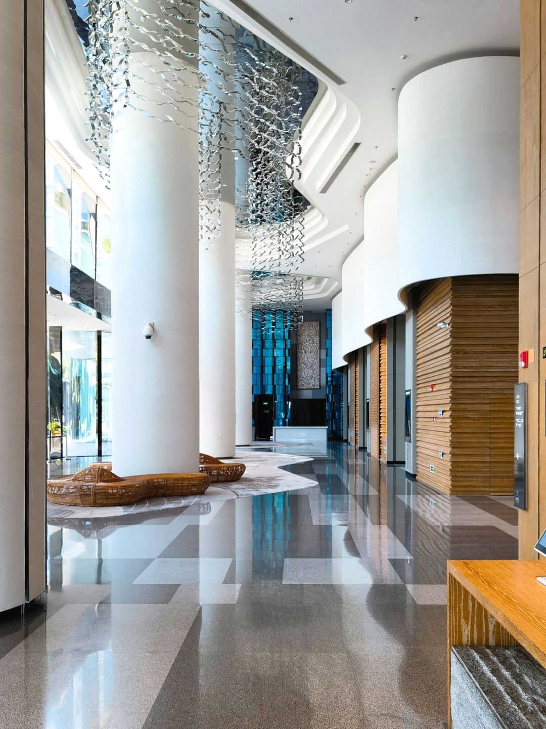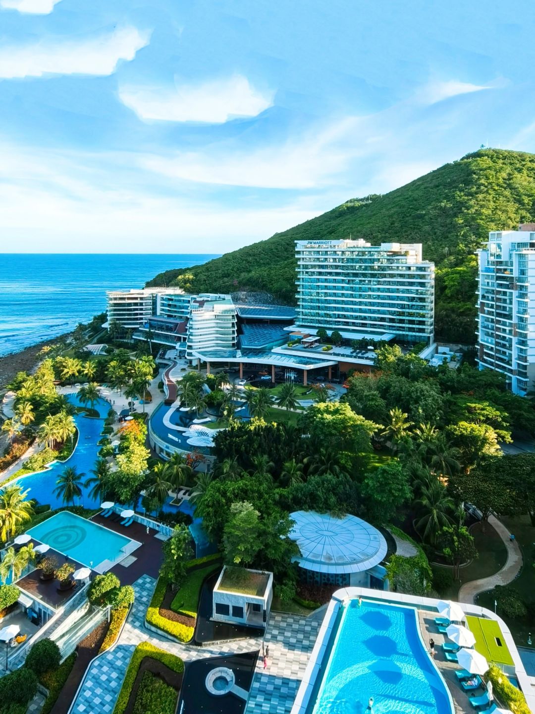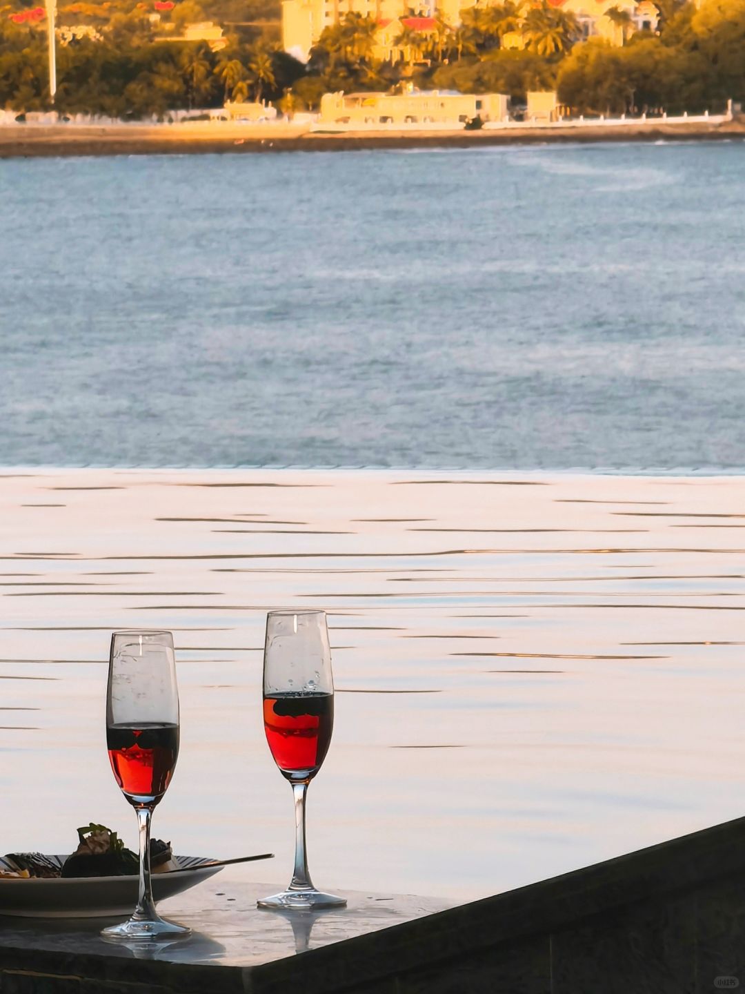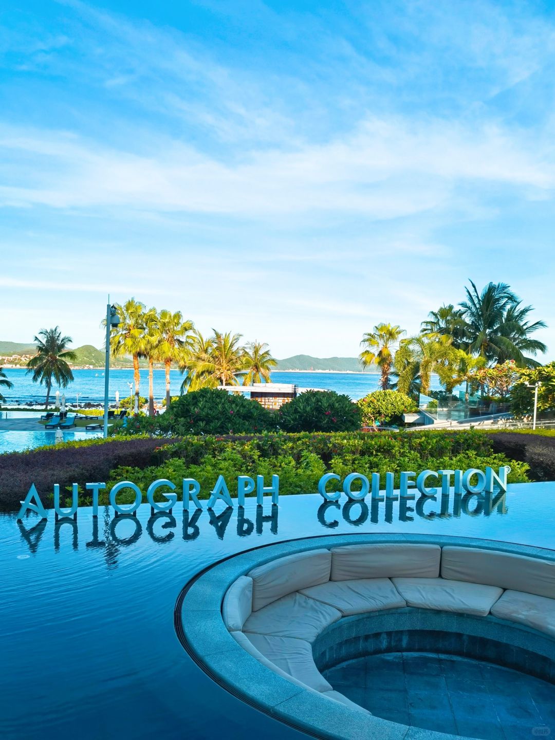 酒店和山海天jw万豪公用部分公区,泳池有好几个,楼顶的无边泳池也很出片,尤其是日落的时候,很有质感。