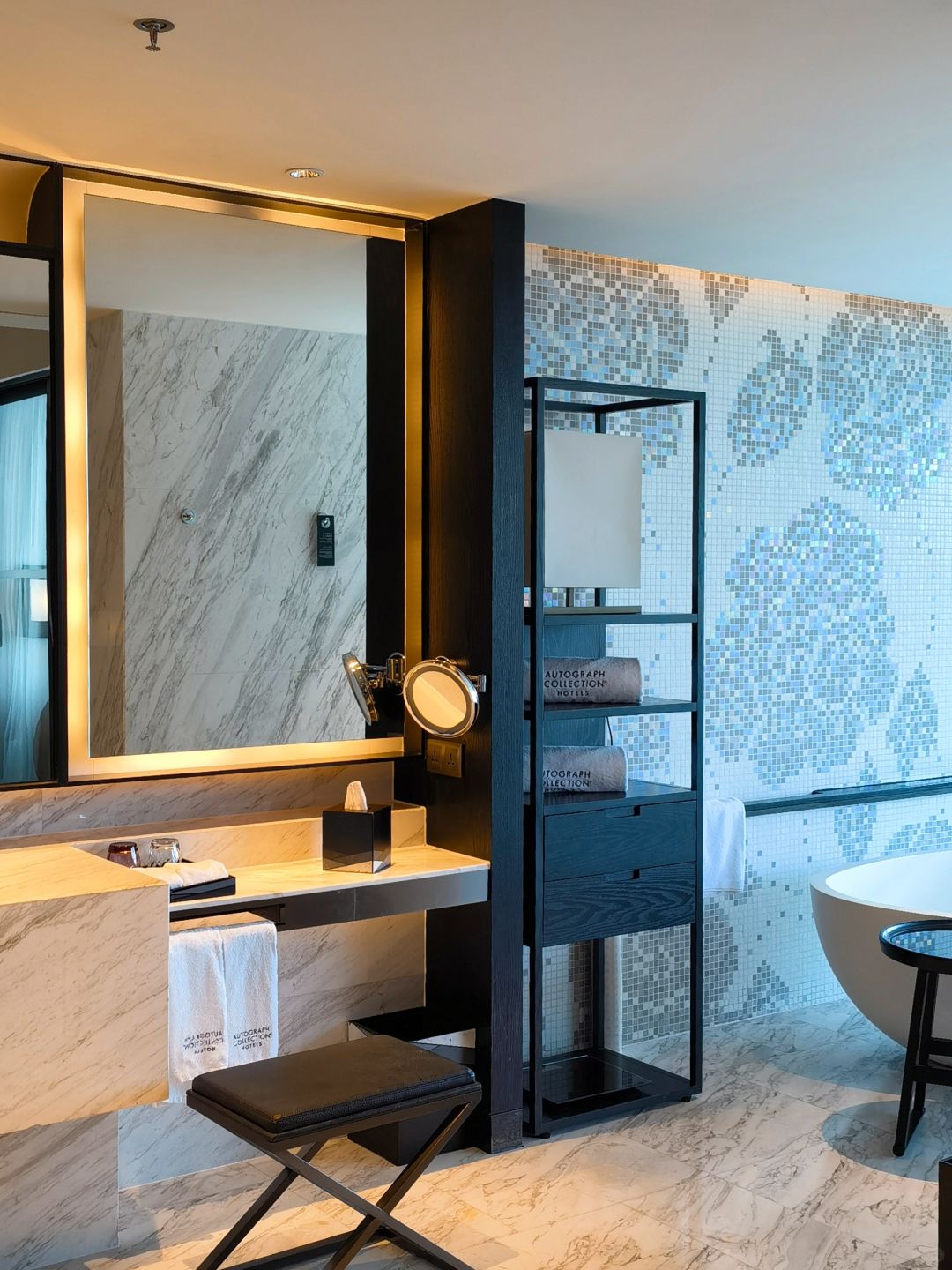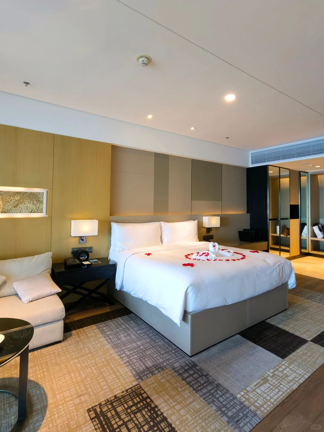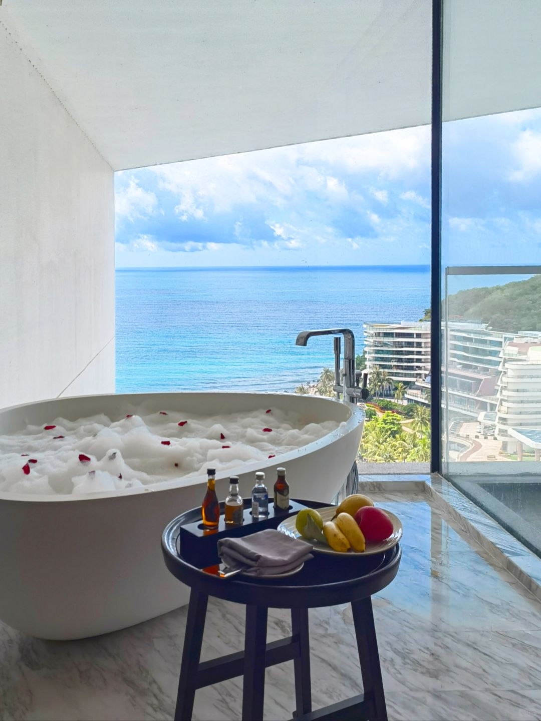 即使是90度摩登阁也非常漂亮,房间搭配非常高级,高级到已经超过了这个价位的质感,甚至恍惚间有种瑰丽或者w的感觉,尤其是浴缸看出去,确实漂亮。