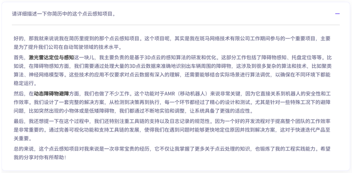 问题:"请详细描述下你简历中的这个点云感知项目"
