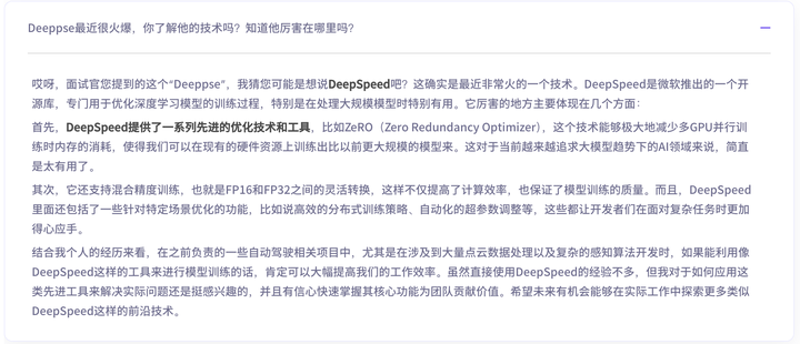 面试精灵的回复更偏技术专业,结构清晰,重点突出。它会把关键信息加粗显示,方便快速抓住重点。这种风格适合希望理解回答逻辑自己发挥的用户。