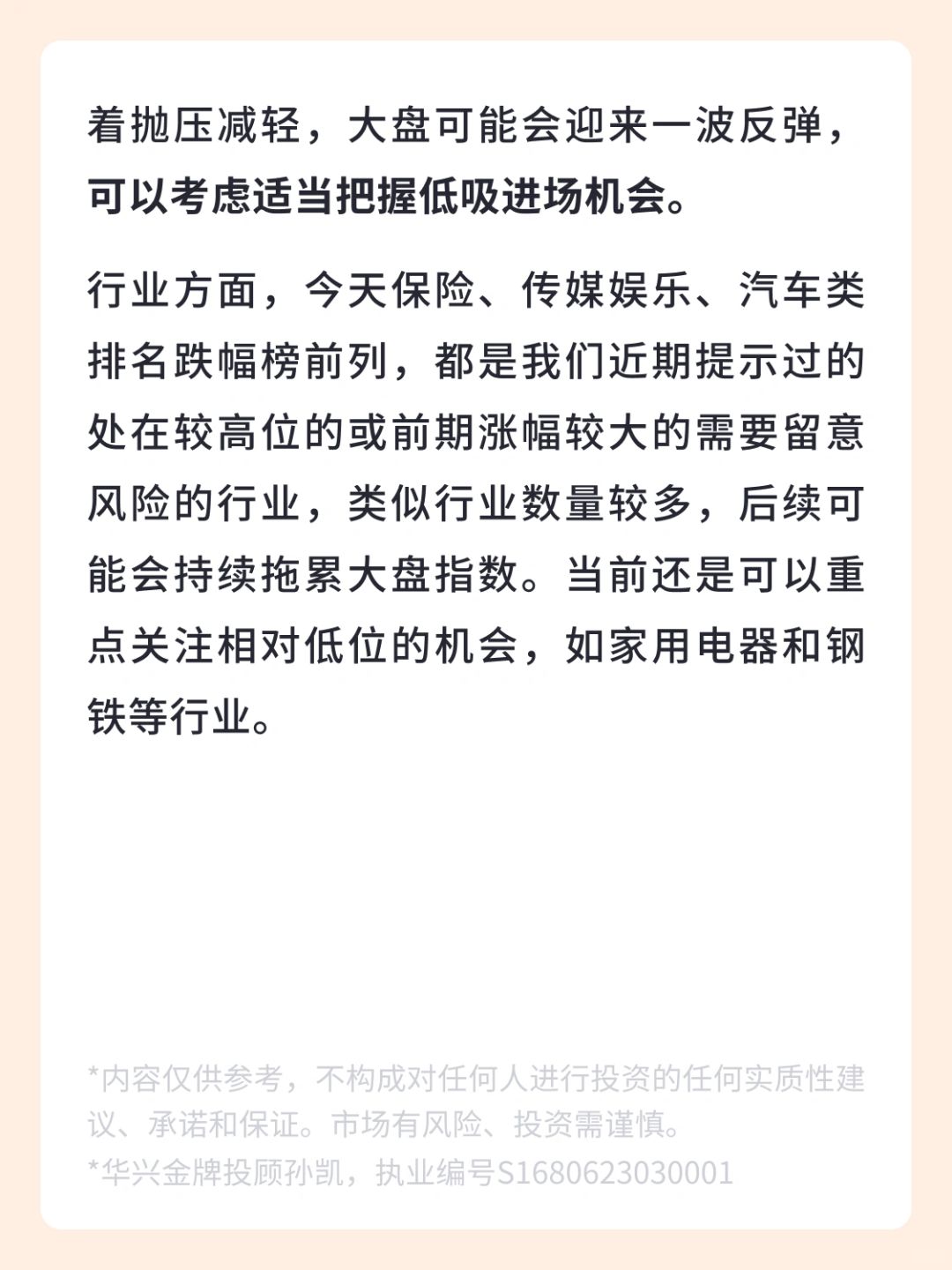 *华兴金牌投顾孙凯,执业编号S1680623030001