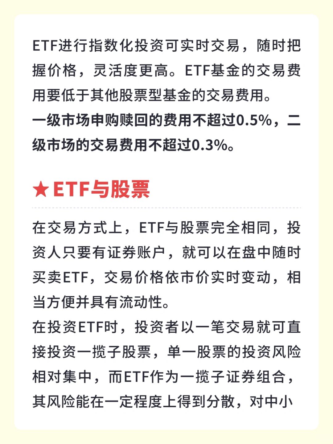 交易层面上,ETF的交易结合了股票交易的特性,可以在二级市场直接进行盘中买卖。ETF基金的交易费用要低于其他股票型基金的交易费用