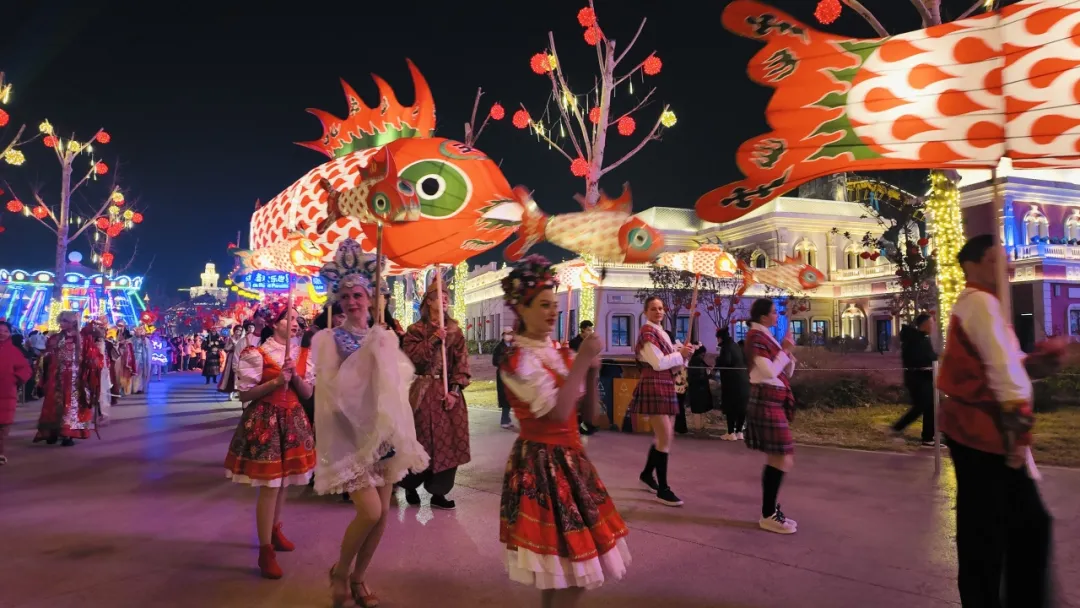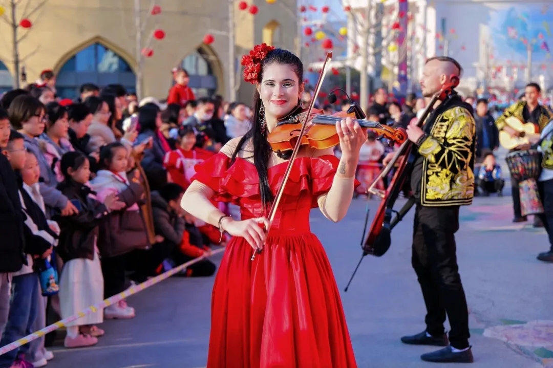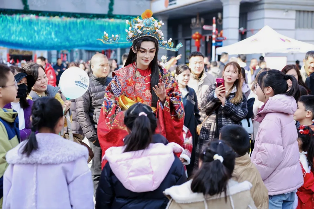欧式浪漫直接拉满,演员身着华丽欧式礼服,沿街巡游主动和游客互动送惊喜。还有百万网红NPC“鹿荼白”化身丝路“使者”沉浸式解锁欧式新春仪式感,少女心直接被戳中。