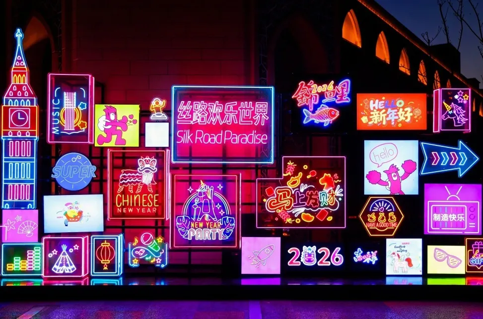 此外园区各个角落还藏着新春限定打卡点,马年主题美陈、红灯笼长廊、丝路主题装置、氛围感灯串随处可见,不管是主干道还是小众角落,随手拍都是新春氛围感大片。除此之外还有超多轻休闲玩法,逛累了歇一歇、拍拍照,一站式解锁新春逛玩新姿势,承包你所有欢喜~