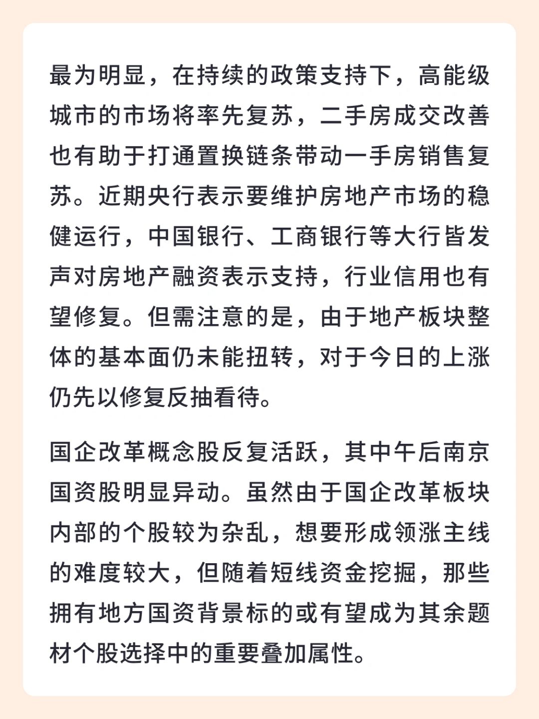 2⃣️ 板块聚焦——地产板块涨幅居前,国企改革概念再活跃