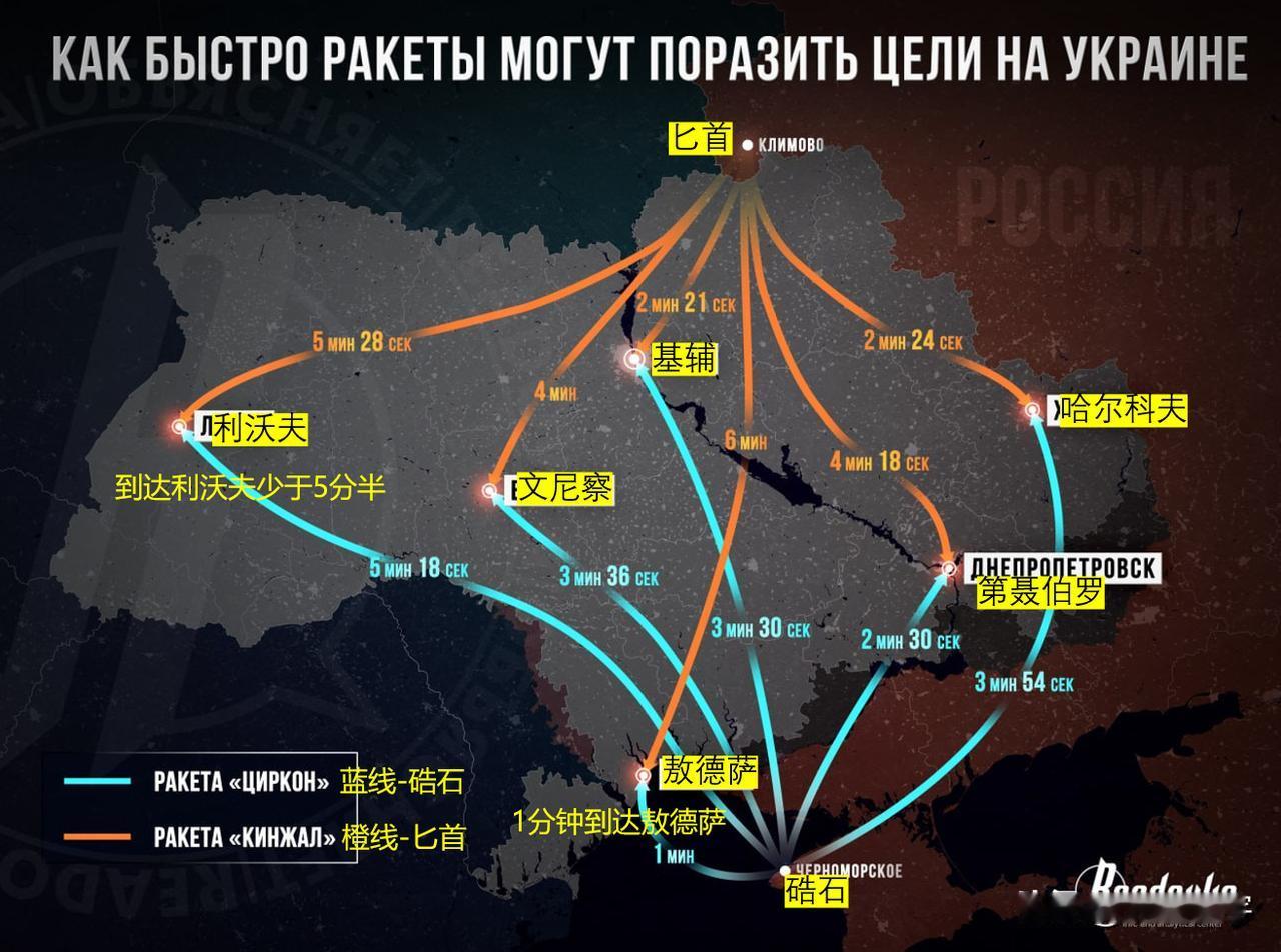 3月27日,乌克兰方面称,乌克兰军事研究实验室表示,3月25日,俄军发射的“锆石”高超音速导弹,是被乌克兰军队的美制爱国者防空导弹“击落”的。“锆石高超音速巡航导弹的战斗部装药只有80公斤”。“没有看到反舰导弹应有的破坏力”。从乌克兰展示的俄,所谓被拦截的锆石高超音速巡航导弹的残骸,应该是燃料箱,而不是战斗部和弹头。没看懂乌克兰的声明,啥叫成功拦截?如果成功拦截了,但是俄军锆石高超音速导弹的战斗部,会掉落在学校和民防总局?战斗部成功过砸下去,谈什么拦截,拦着啥了?这么巧就掉乌克兰民防总局了?导弹打中乌克兰民防总局,当然有残骸了。乌克兰向来如此,拿目标拦截,拦截不等于摧毁。乌克兰那可是标榜自己,“拥有世界第一防空部队”,前段时间不到一个月就“击落了”20多架苏34,“要不是打累了,没耐心敲键盘了”,“打下区区锆石算什么?”现在乌克兰防空部队不敢再发“捷报”了,不然还天天被俄军炸弹炸,谎言就圆不过去。俄军同时打了上百发导弹,乌军自嗨说打到锆石高超音速导弹,就打到吧,反正乌克兰安全局大楼确定被一发入魂全楼倒塌。俄军高超音速导弹无法拦截,主要是因为飞行速度太快,比如图2,俄军匕首高超音速导弹,打击最远的利沃夫地区,只需要不到5分半的时间,锆石高超音速导弹,打击达利沃夫也只需要318秒,打击距离仅为800公里,这么短的时间,乌克兰军队拿什么反应,拿什么拦截?