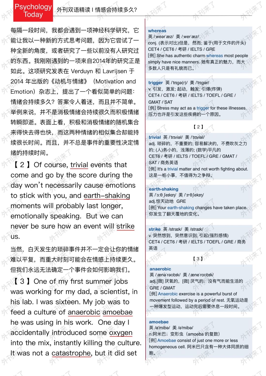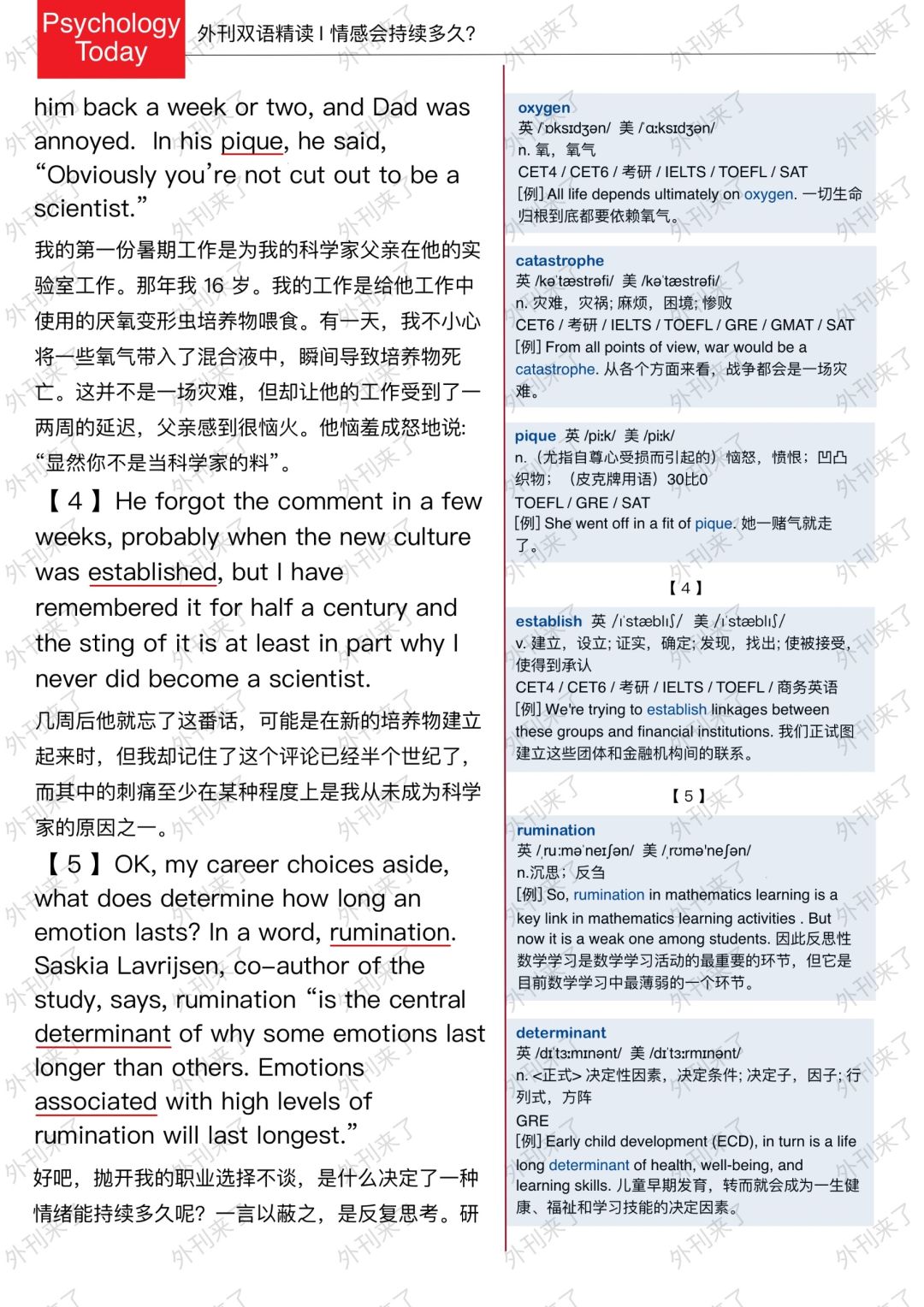 🔥英语学习必备的外刊精读 ⭐选自Psychology Today ⭐每周会从原刊中选取多篇文章精读 🏆🏆重点单词⤵️ 🏅encounter 遭遇 🏅accomplish 完成 🏅fleeting 短暂的 🏅trigger 引发 🏅trivial 琐碎的 🏅strike 突然想到 🏅oxygen 氧气 🏅catastrophe 灾难 🏅rumination 沉思 🏅determinant 决定性因素
