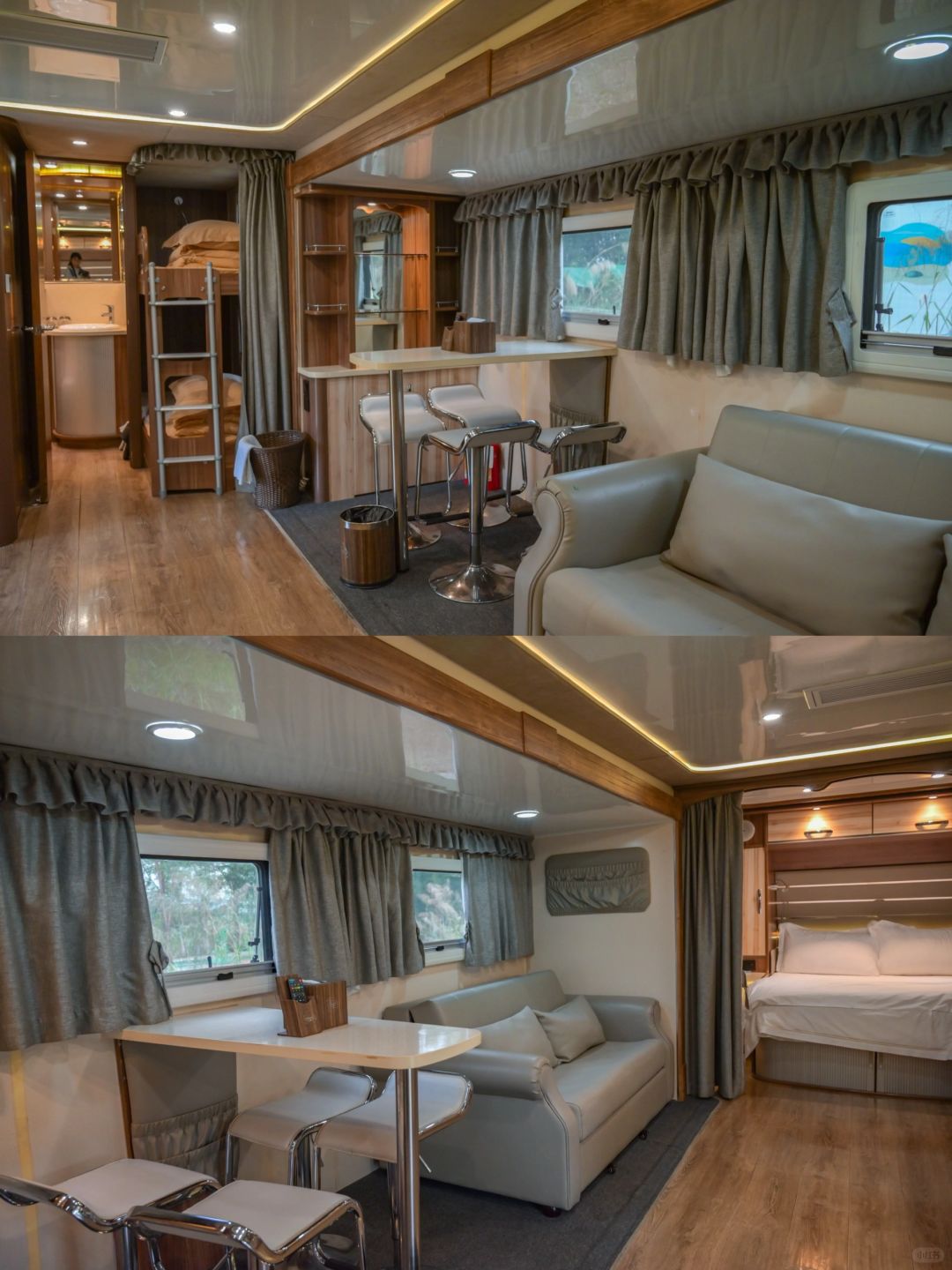 🌟 独特的森林氛围,透过房车双面采光的玻璃窗,让房车里的人与自然空间紧密相连。