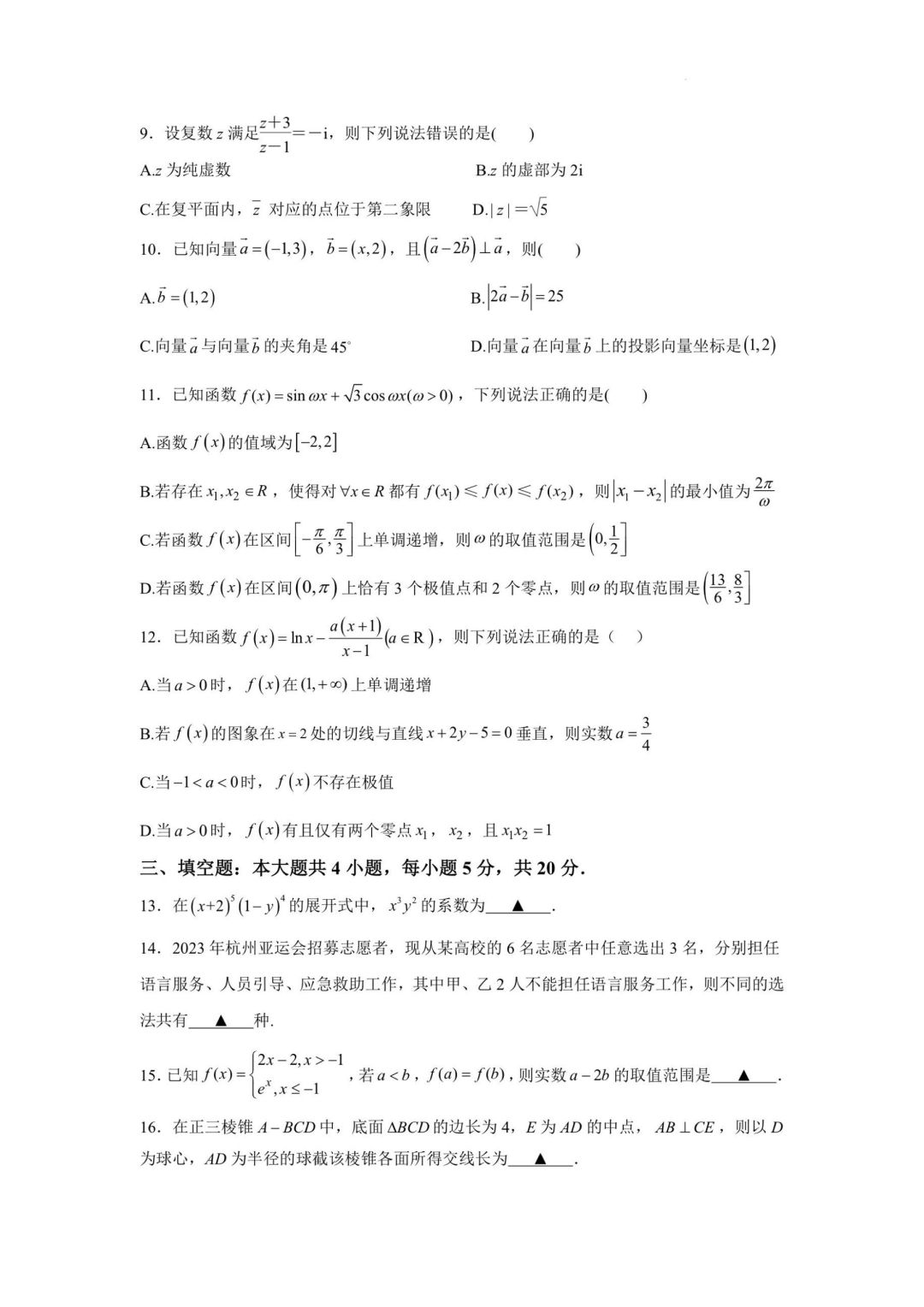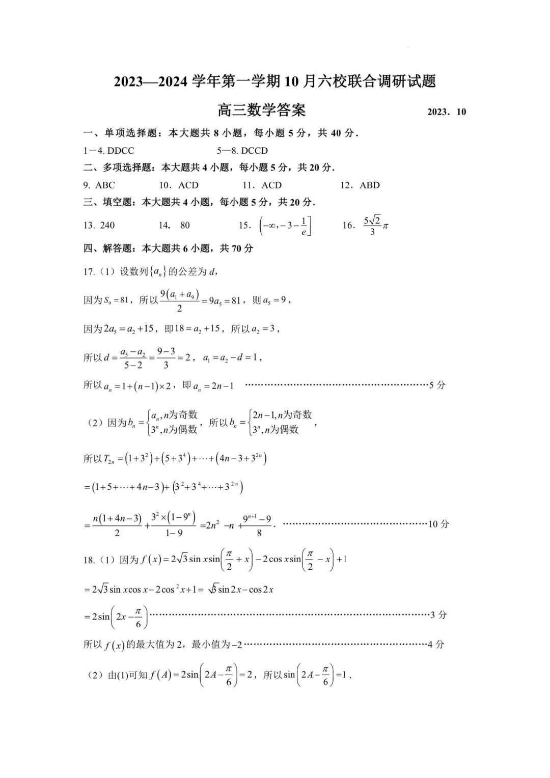 南京6校联考高三10月数学