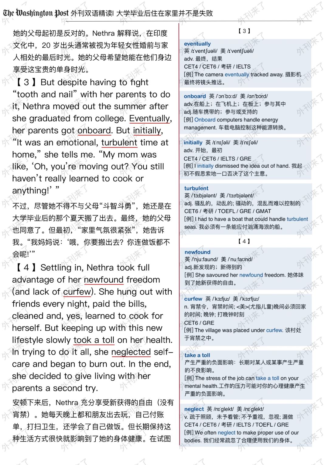 🔥英语学习必备的外刊精读 ⭐选自The Washington Post ⭐每周会从原刊中选取多篇文章精读 🏆🏆重点单词⤵️ 🏅commute 通勤 🏅precious 宝贵的 🏅onboard 支持同意 🏅initially 开始 🏅curfew 宵禁 🏅take a toll 产生负面影响 🏅neglect 疏于照顾 🏅bid 努力尝试 🏅mutual 相互的 🏅abundantly 丰富地 🏅stability 稳定