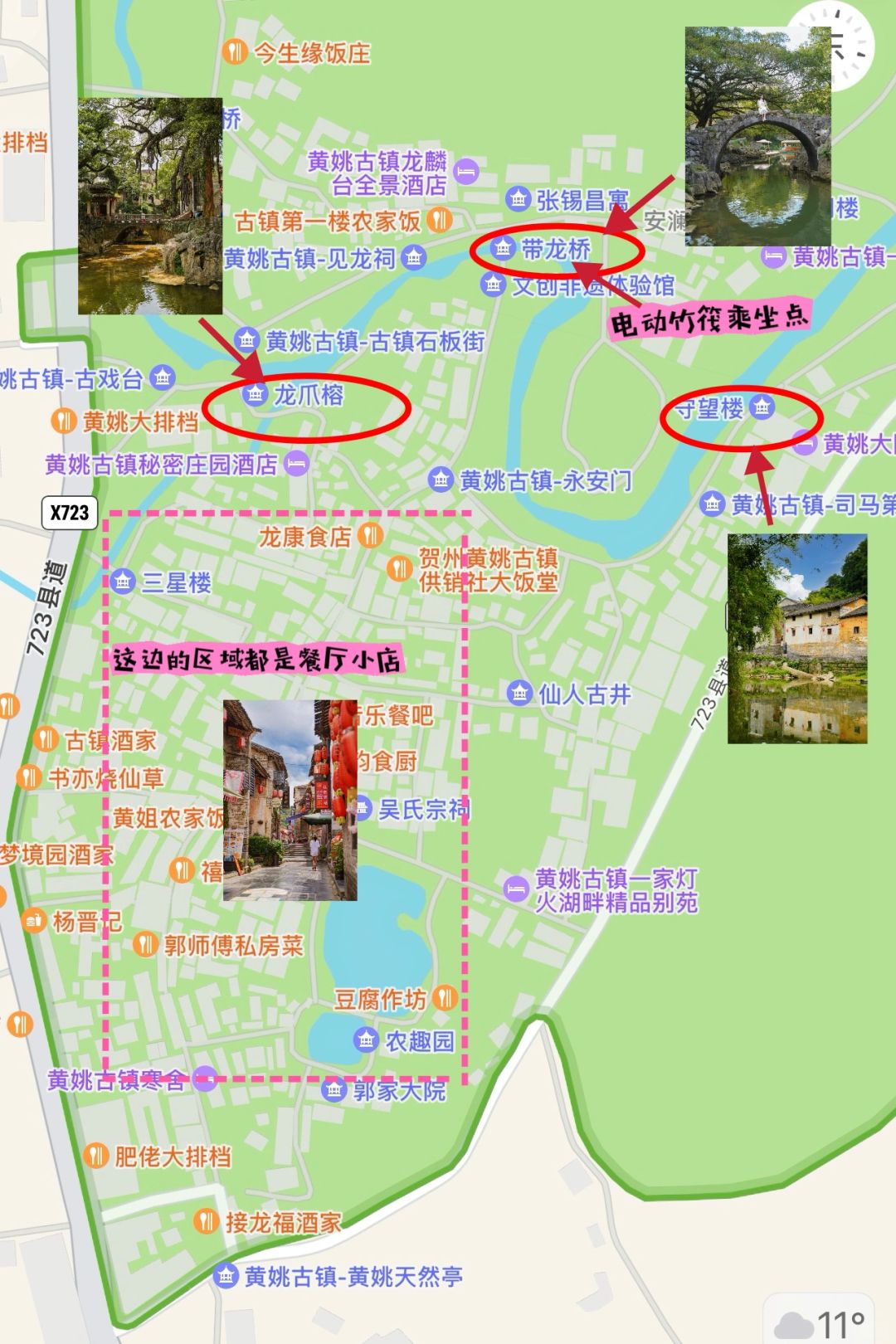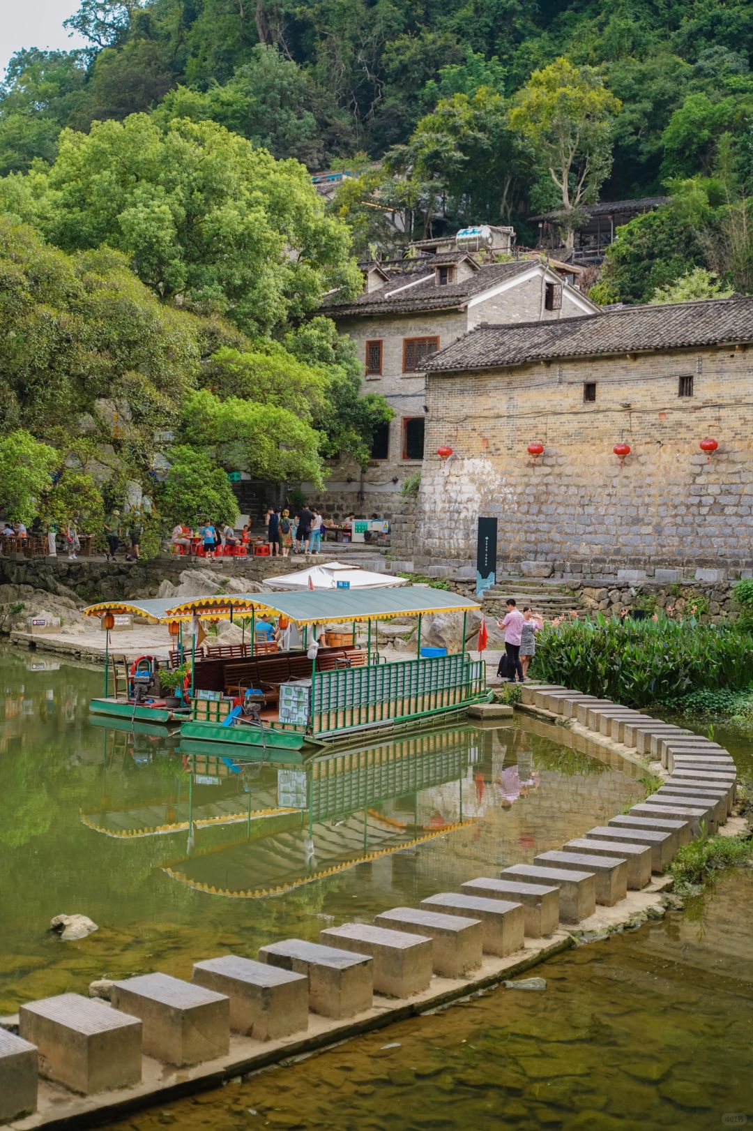带龙桥旁可以电动竹筏游古镇,景色很漓江!