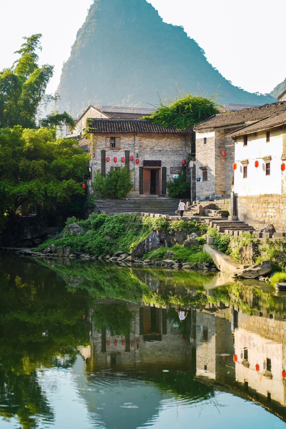 在兴宁庙的位置有一座石桥,站在石桥上可以拍到格斯特地貌下的黄姚很出片。