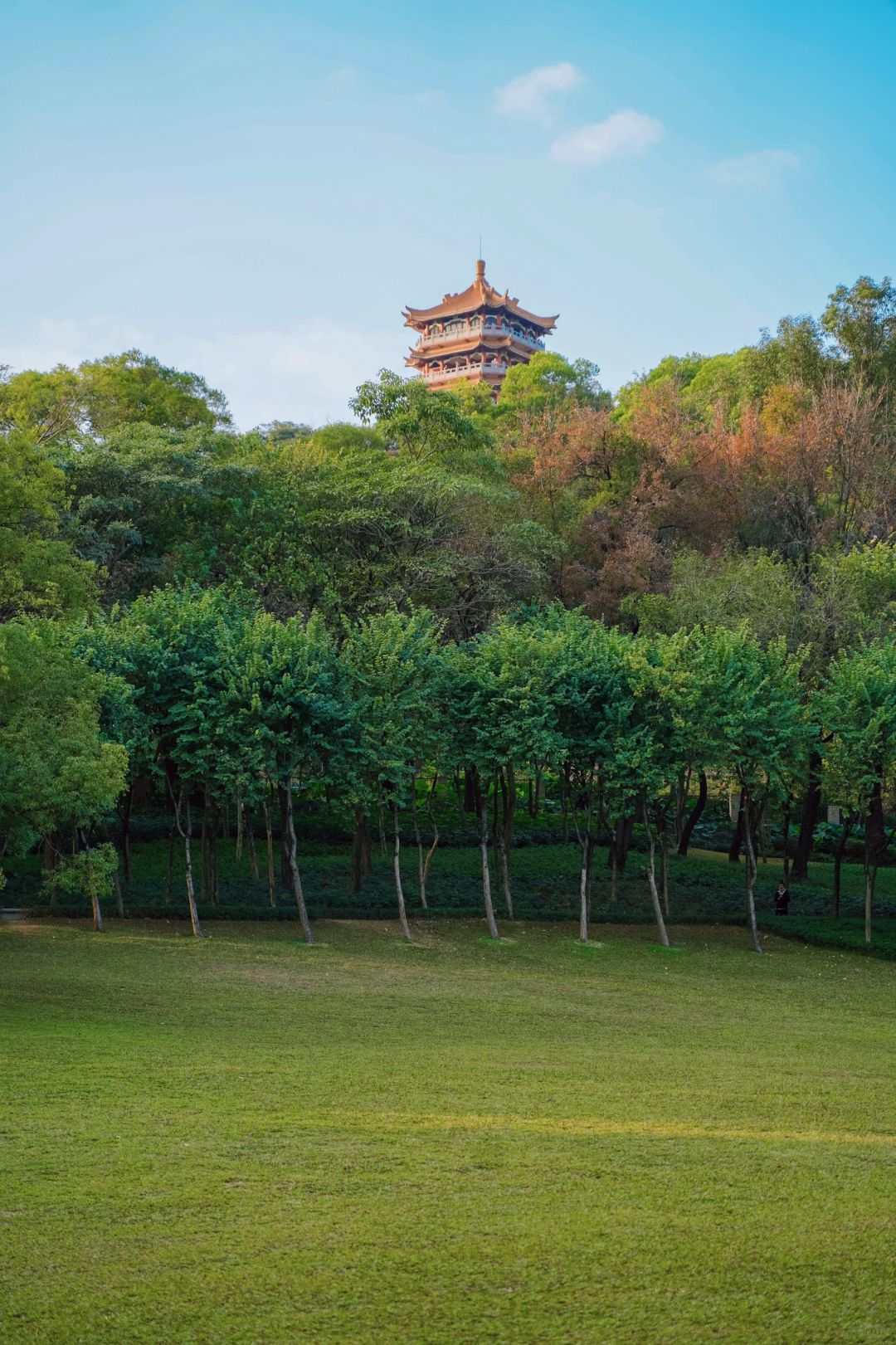 在麓湖公园里抬头都能看到屹立在山顶上的它。