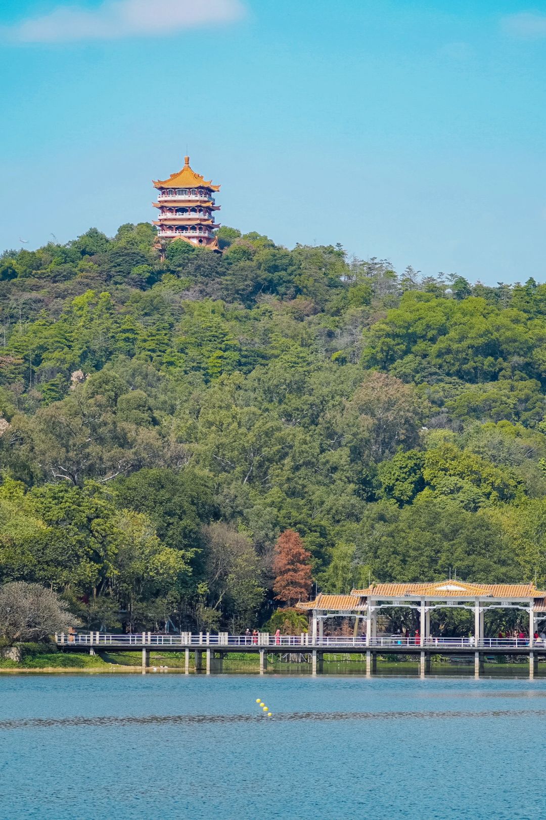 景色十分好,往下看去整个麓湖公园尽在眼前。