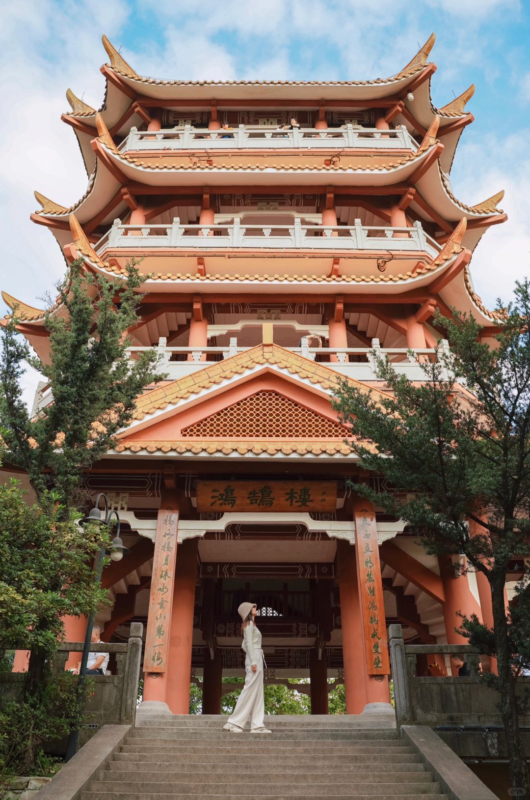 快走到鸿鹄楼的楼梯上拍