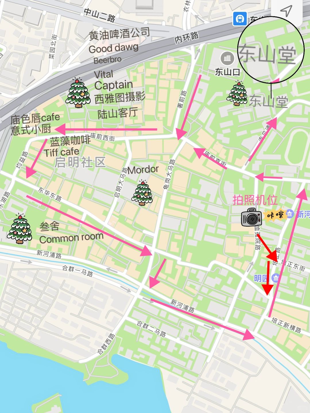 东山口圣诞版游玩地图已整理好了(详看图13,标注的都是圣诞氛围满满的小店)。