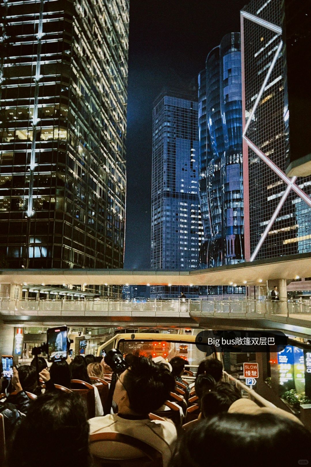 香港敞篷观光巴士坐在2层真的能感受飞车般的观光,坐在观光车上看香港夜景也美绝,一定要试试。