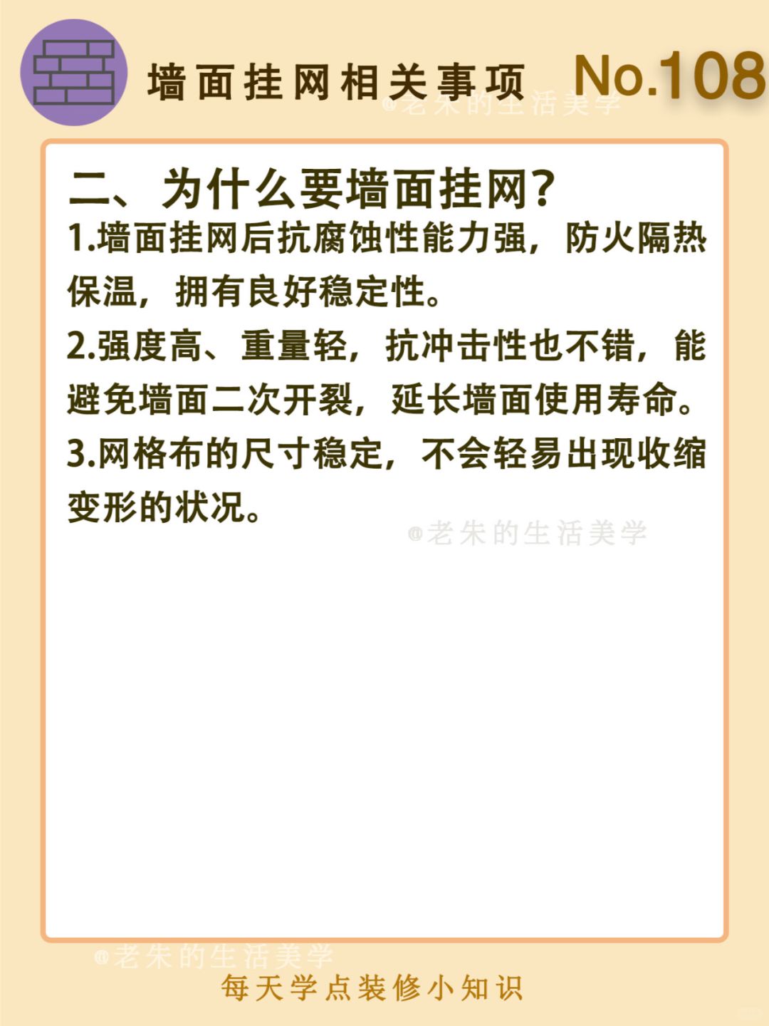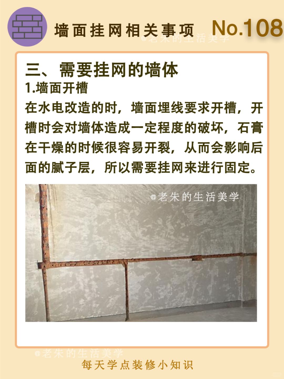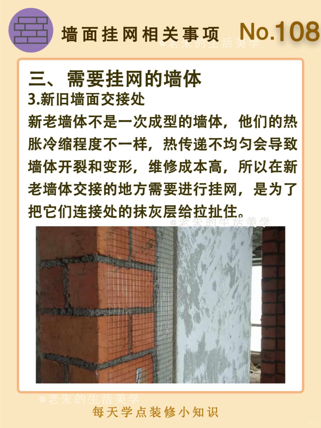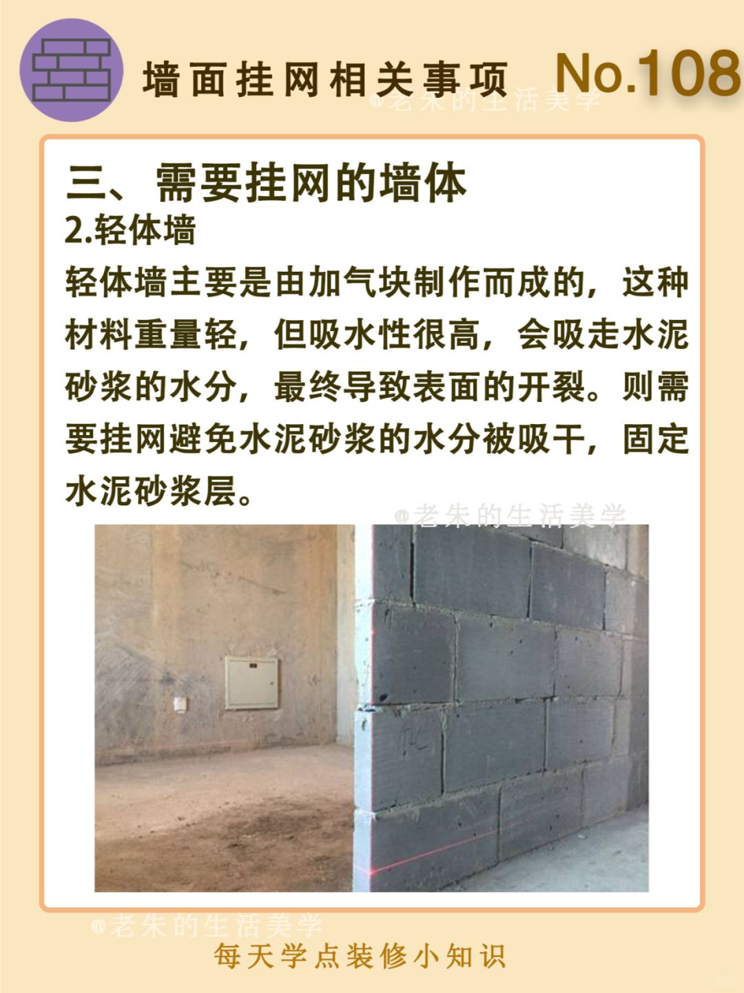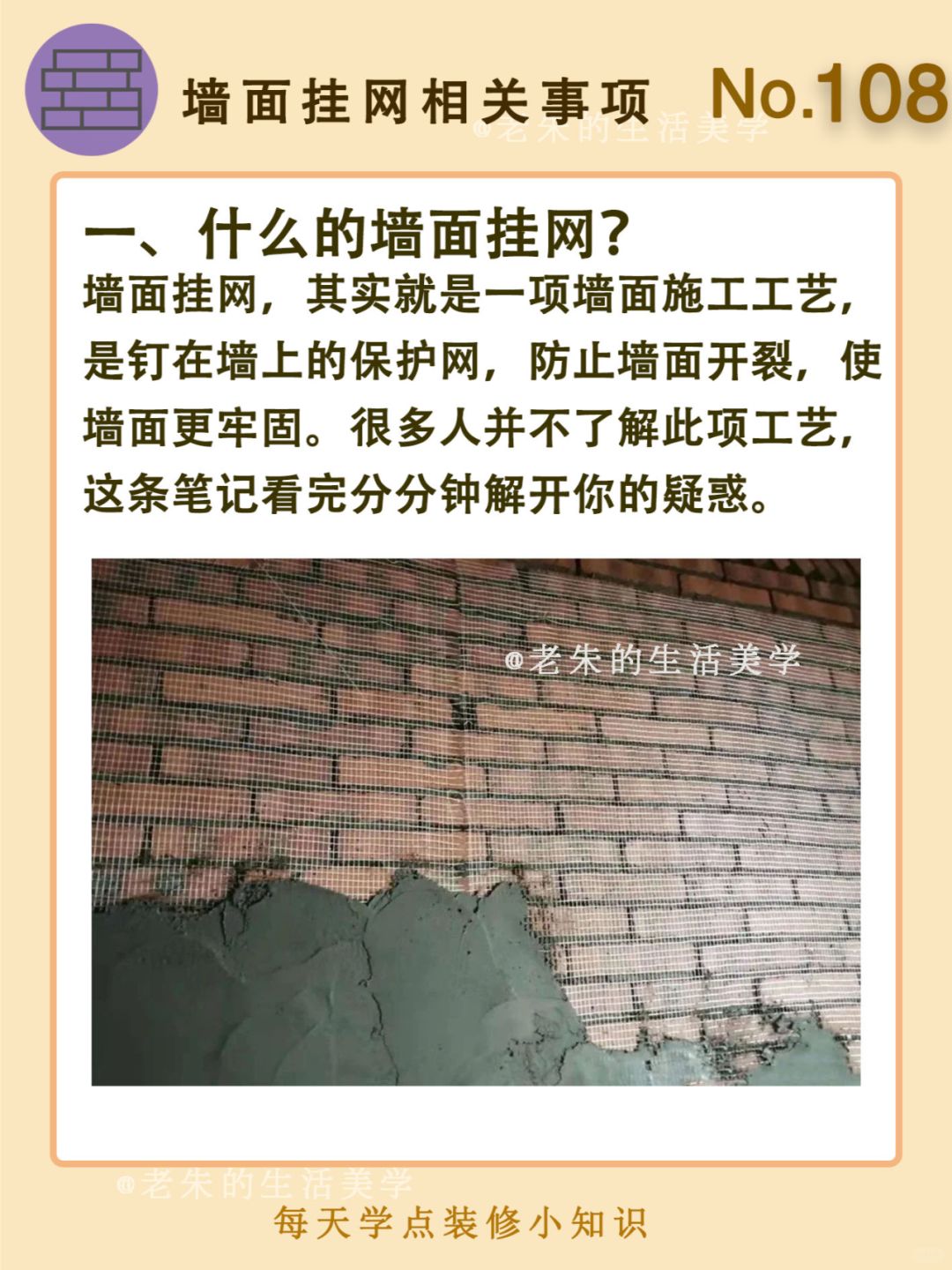 🔆 一、什么是墙面挂网 二、为什么要做墙面挂网 三、需要挂网的墙体 四、墙面挂网的类型 五、墙面挂网如何选择? 🔆 我是老朱 📍坐标天津 前上市公司金牌工长🏅 30年施工经验🛠 承接天津新房装修/老房改造 精心整理关于设计&施工&装修的攻略📝 关注我每日更新🗓 也可以在评论区留下您宝贵的想法与建议💓 让您装修不走弯路✅