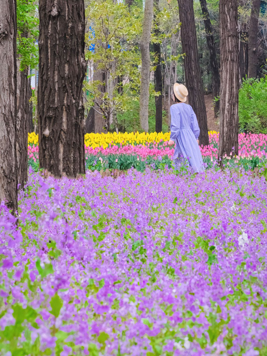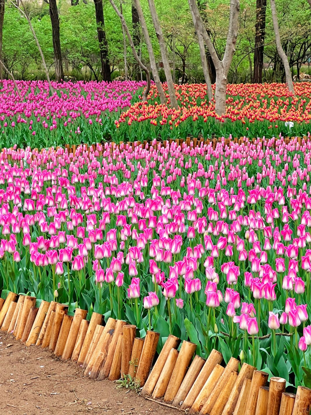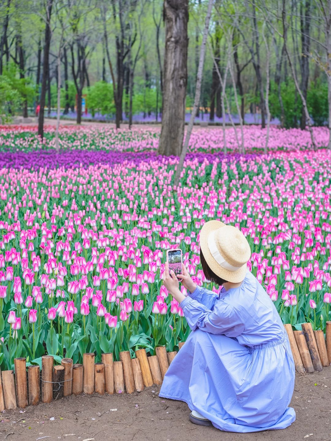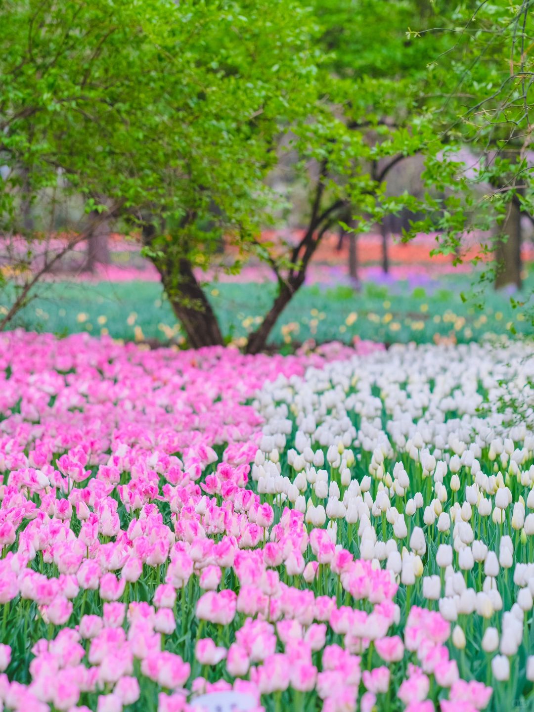 不用去杭州太子湾 青岛也有一个超宝藏的郁金香花海! · 这里有33个品种 足足70万株郁金香🌷 随手一拍 每一帧画面都如油画般美好[哇R] · 四月的胶州植物园树木郁郁葱葱 树林里还有一大片梦幻的紫色二月兰 小湖畔还摇曳着明黄色的洋水仙🌼 · 这组图片拍摄于2023.4.7 郁金香大概盛放了80%就已经超级壮观 没赶上去年的郁金香 今年就千万不要错过啦! ·