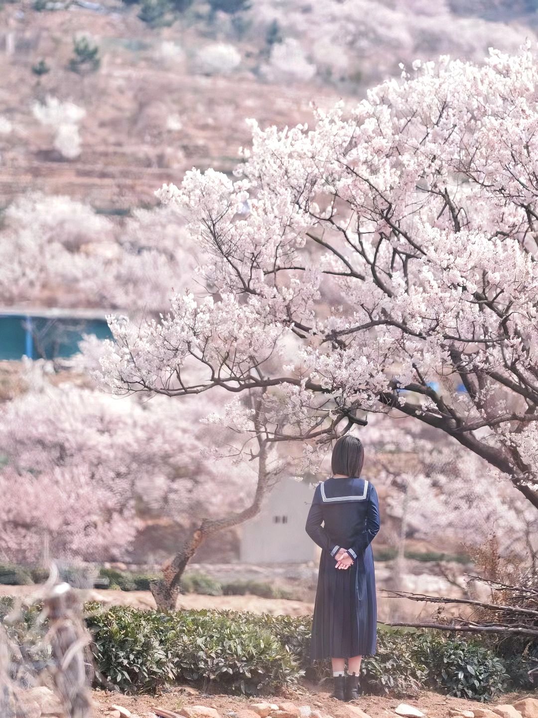 3️⃣崂山四水公交站(樱桃花海,三月末)