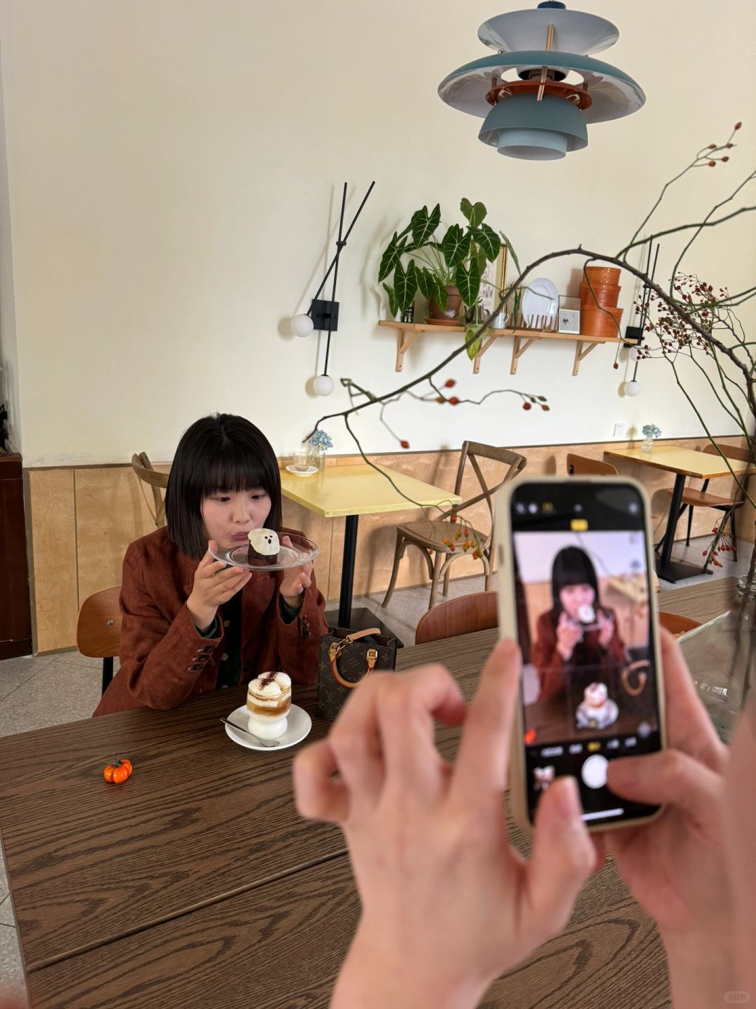 不得不说👻 这家可露丽在青岛真的没有对手‼️ · 来吃下午茶发现☕️ 可露丽已经换上了万圣节限定皮肤🎃 小幽灵真的好好好可爱👻 可露丽外脆里润还有豆乳的内馅儿😋 搭配的饮品也是美拉德配色🍂 · 这次还爱上了秋日限定的 红薯芝士和无花果蛋糕🍰 果然季节更替的时候 仪式感是让人快乐的秘诀呀[举手R][哇R] ·