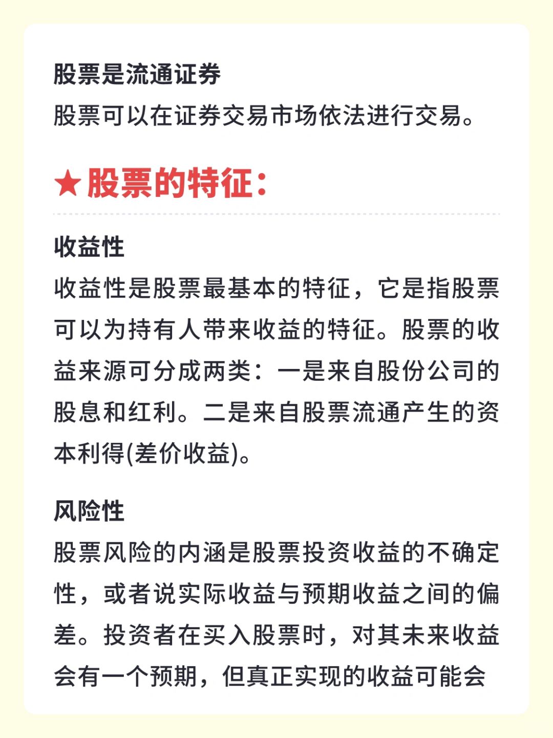 收益性是股票最基本的特征,它是指股票可以为持有人带来收益的特征。股票的收益来源可分成两类:一是来自股份公司的股息和红利。二是来自股票流通产生的资本利得(差价收益)。
