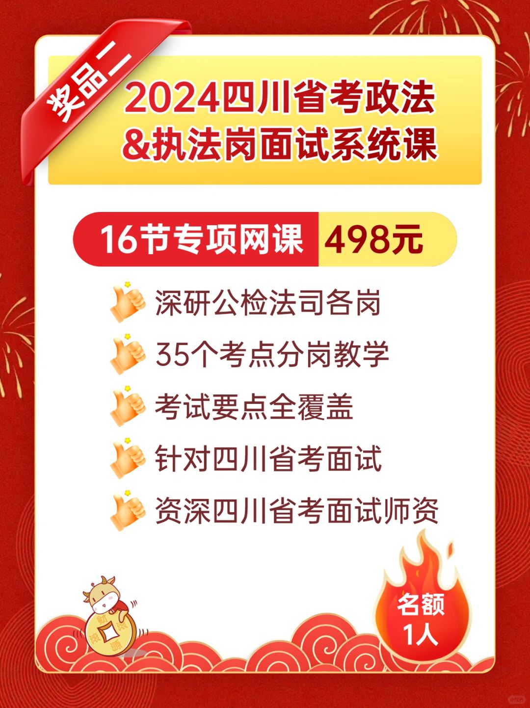 ✅奖品2:2024四川省考政法&执法岗面试系统课(1名)