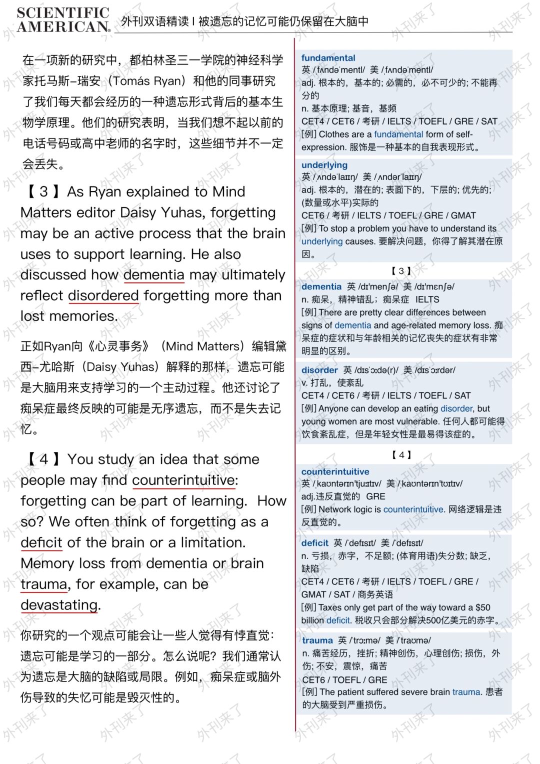 🔥英语学习必备的外刊精读 ⭐选自Scientific American ⭐每周会从原刊中选取多篇文章精读 🏆🏆重点单词⤵️ 🏅intact 完好无损的 🏅frustrating 令人懊恼的 🏅mounting 上升的 🏅notion 概念,想法 🏅lapse 过失 🏅inherently 内在地 🏅underlying 根本的 🏅counterintuitive 违反直觉的 🏅deficit 亏损 🏅trauma 痛苦经历 🏅arbitrary 任意的