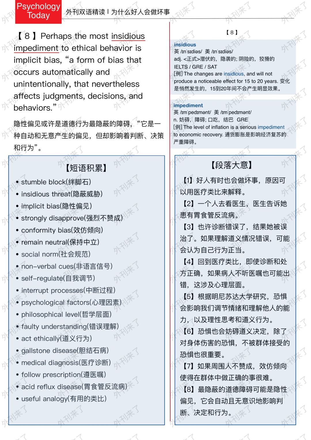 🔥英语学习必备的外刊精读 ⭐选自Psychology Today ⭐每周会从原刊中选取多篇文章精读 🏆🏆重点单词⤵️ 🏅analogy 类比 🏅diagnosis 诊断 🏅faulty 有故障的 🏅interrupt 打断 🏅non-verbal 非语言的 🏅norm 社会准则 🏅morally 道德上 🏅neutral 中立的 🏅exclusion 排除在外 🏅conformity 遵守