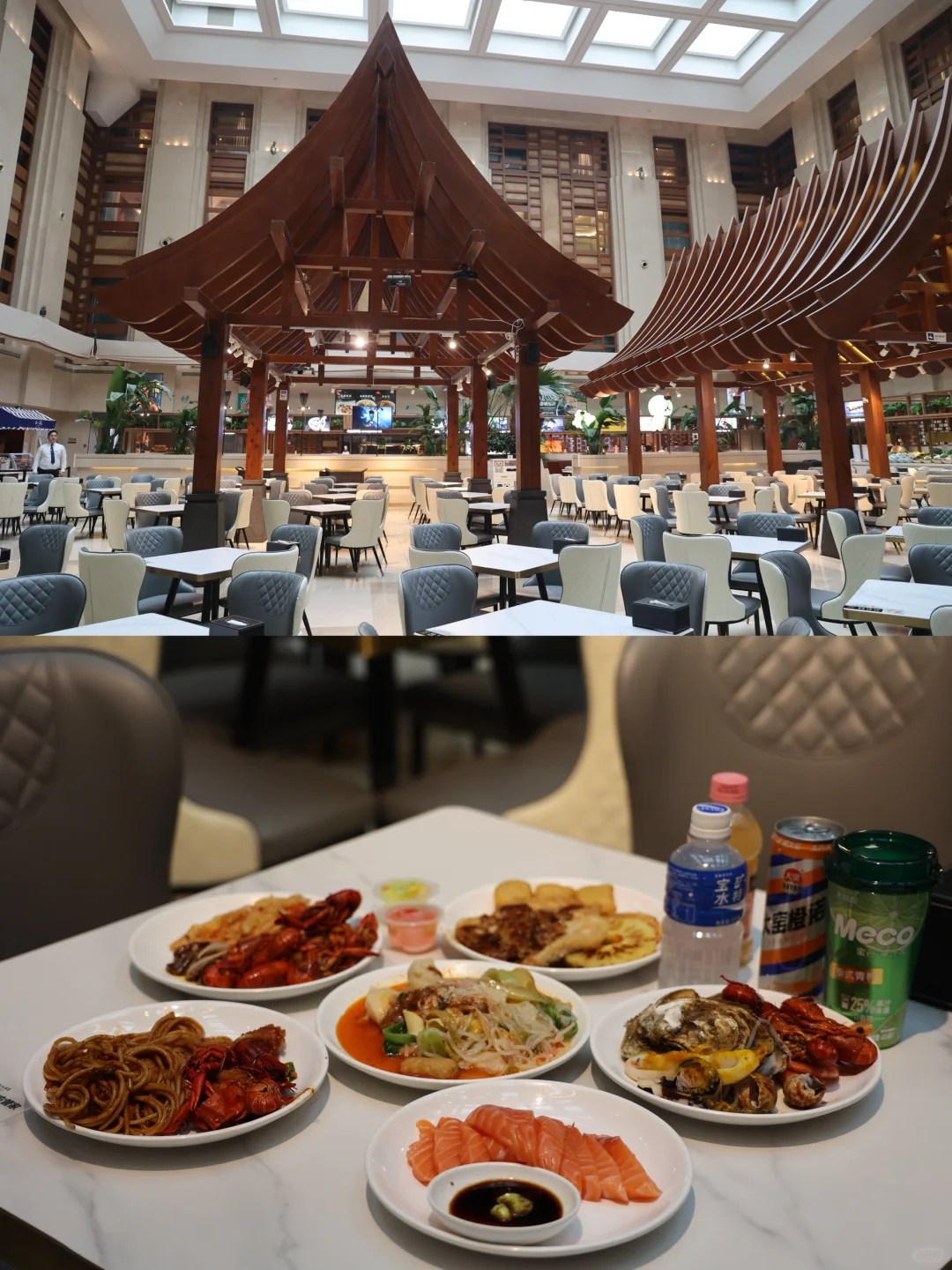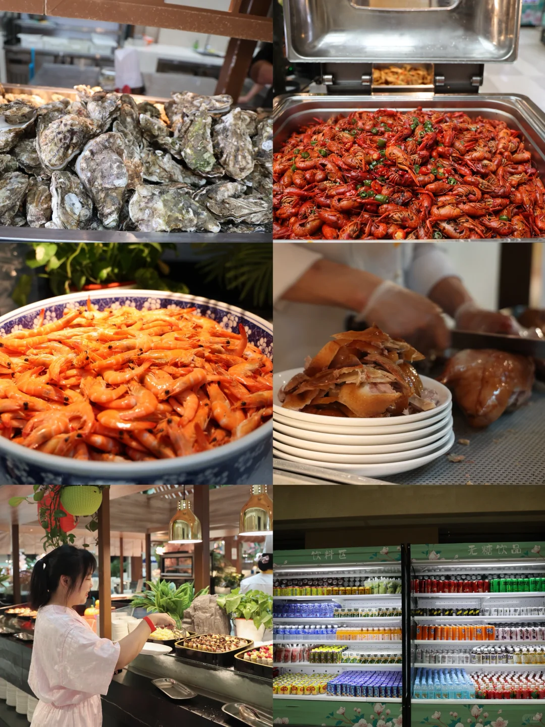 🍽️ 餐饮:门票涵盖四季餐厅自助午/晚餐2选ppp1,午餐时间是11:30-13:30;晚餐时间是17:30-21:30。我选择了晚餐时段,出品的丰把我惊❗️呆❗️了‼️烤鸭,刺身,海鲜,小龙虾🦞,麻辣烫,还有数十种不同品种的饮品……丰富程度堪比广州300+的自助餐,🫣光吃这顿也划算!