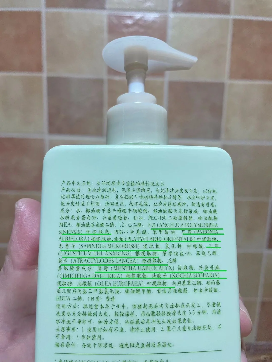 对于侧柏叶和无患子,我还是挺熟悉的。我的养生奶奶活到99岁,头发一直很好。在我小的时候隔一段时间奶奶就会用这两种草本煮水过滤后用来保养头发,而这个洗头水里不但有这两种成分,还加入了燥湿的苍术和行气的薄荷,洗头时能有一种清凉感。