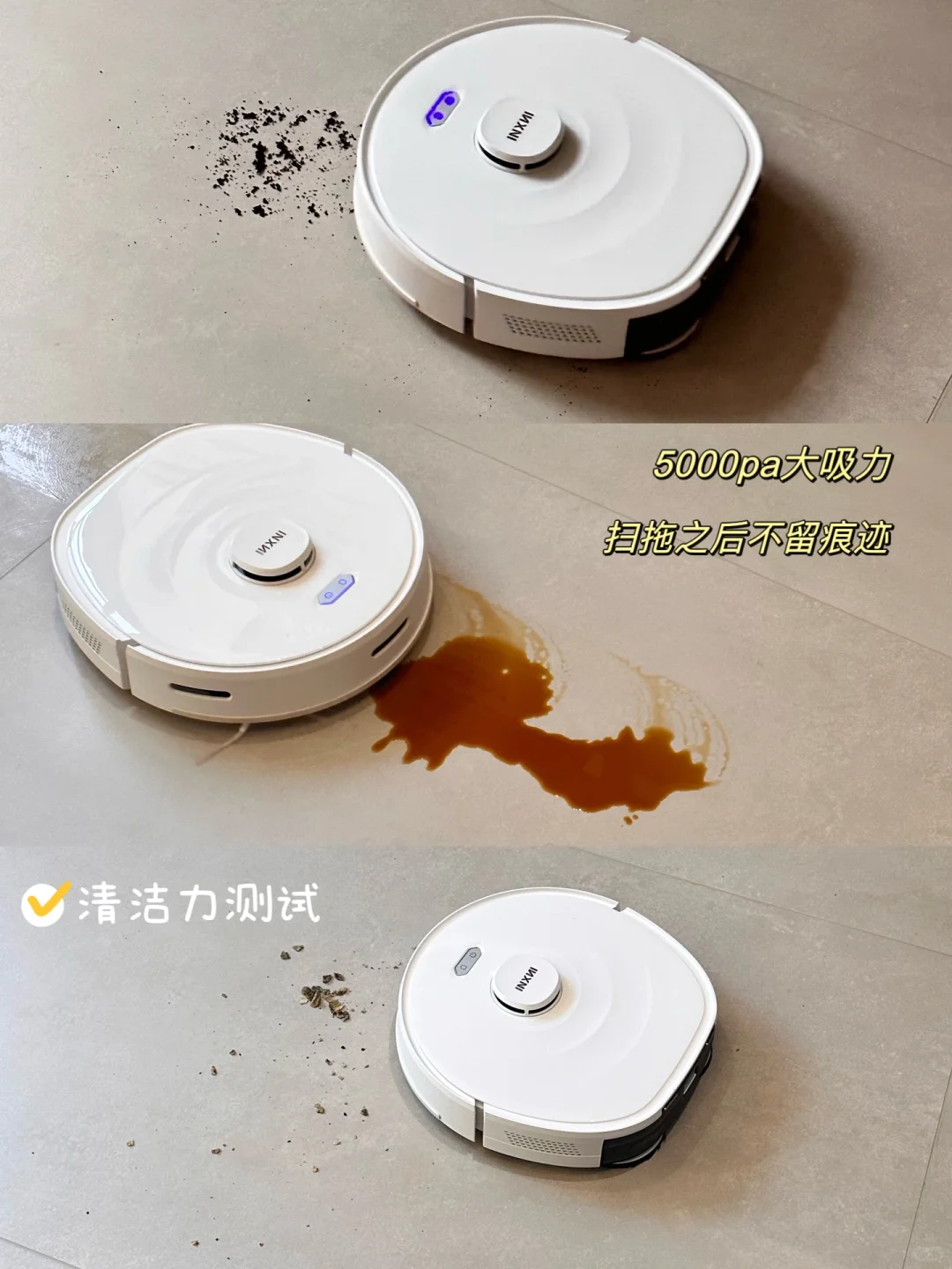 5000pa的大吸力,边扫边拖,每次拖地,双盘旋转模拟人手加压擦地,不论是重油污、多水渍的区域,一台就能完全解决。手机📱远程操控机器,出门后随时启动机器,回来就能拥一个干净的家