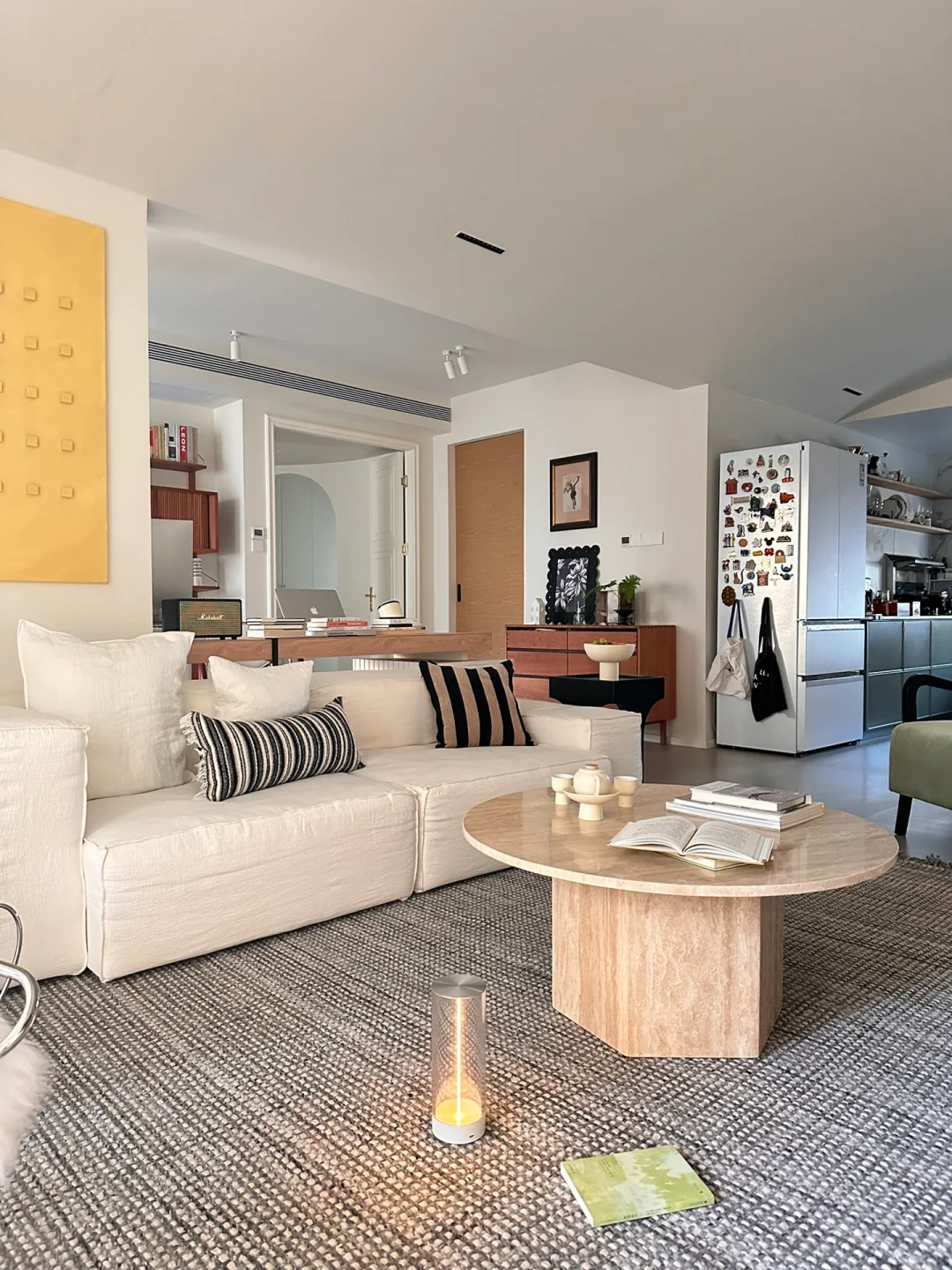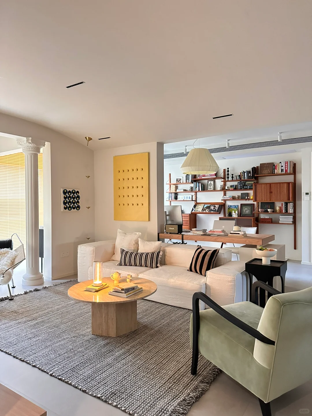 1️⃣拆了阳台推拉门,砸掉一间卧室,客餐厨书房开放一体,增加了空间灵活性,相比传统户型开阔明亮