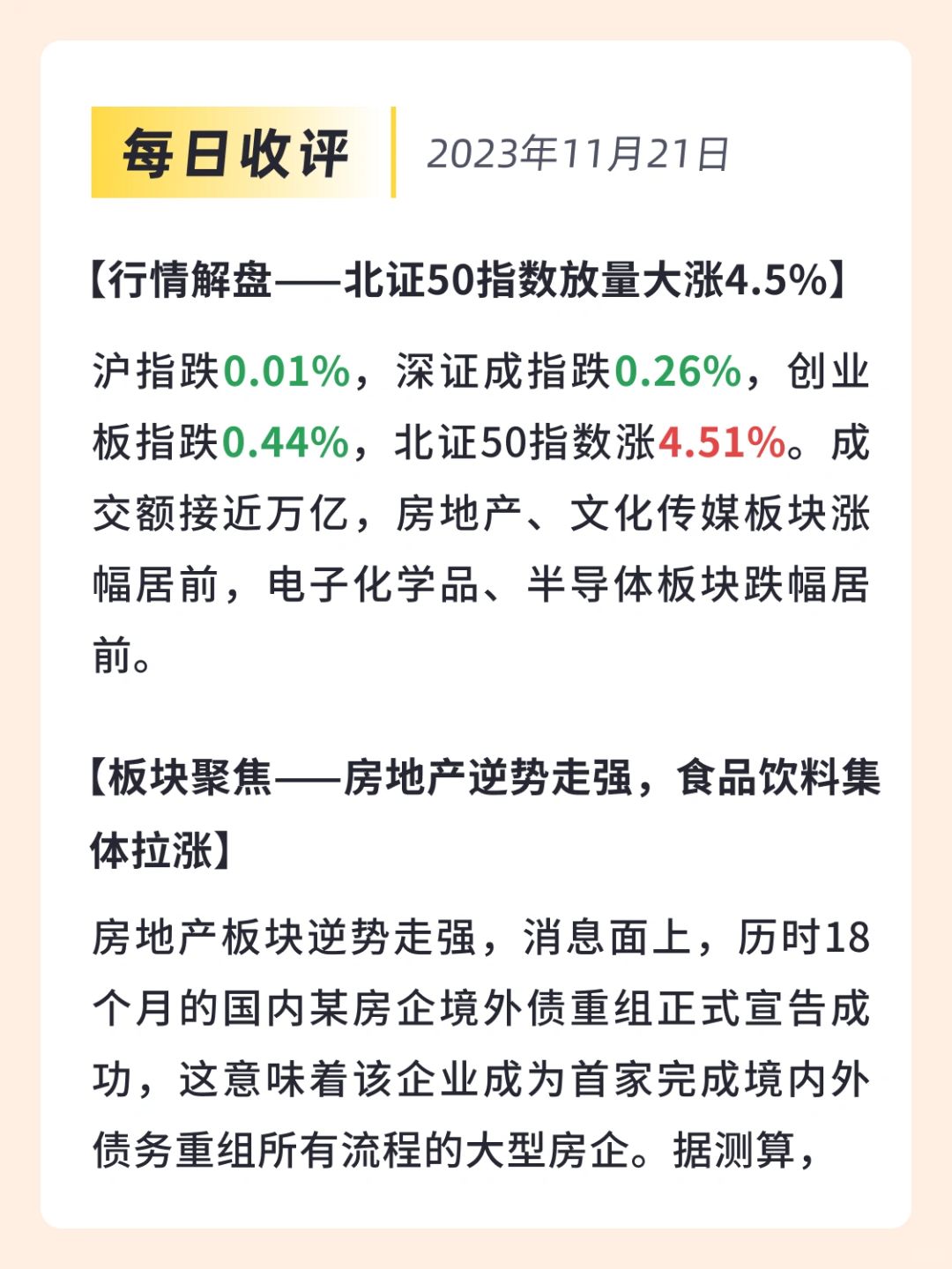 2⃣️板块聚焦——房地产逆势走强,食品饮料集体拉涨