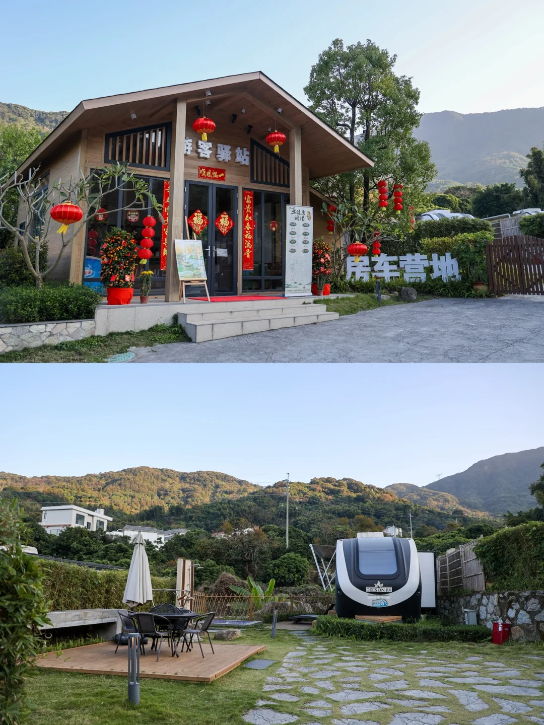 住宿🏨:村内酒店和民宿非常多,不过很多都没有挂平台,直接在房前挂了老板☎️,可以自己联系。喜欢有特色的可以选择星空小木屋或者房车,我和闺蜜这次入住的就是南平客栈的摘星小木屋,房间面积不大,内部设施与普通酒店配套无异。亮点是晚上在小木屋的天台上可以看烟花🎆和星空🌌,美美哒!