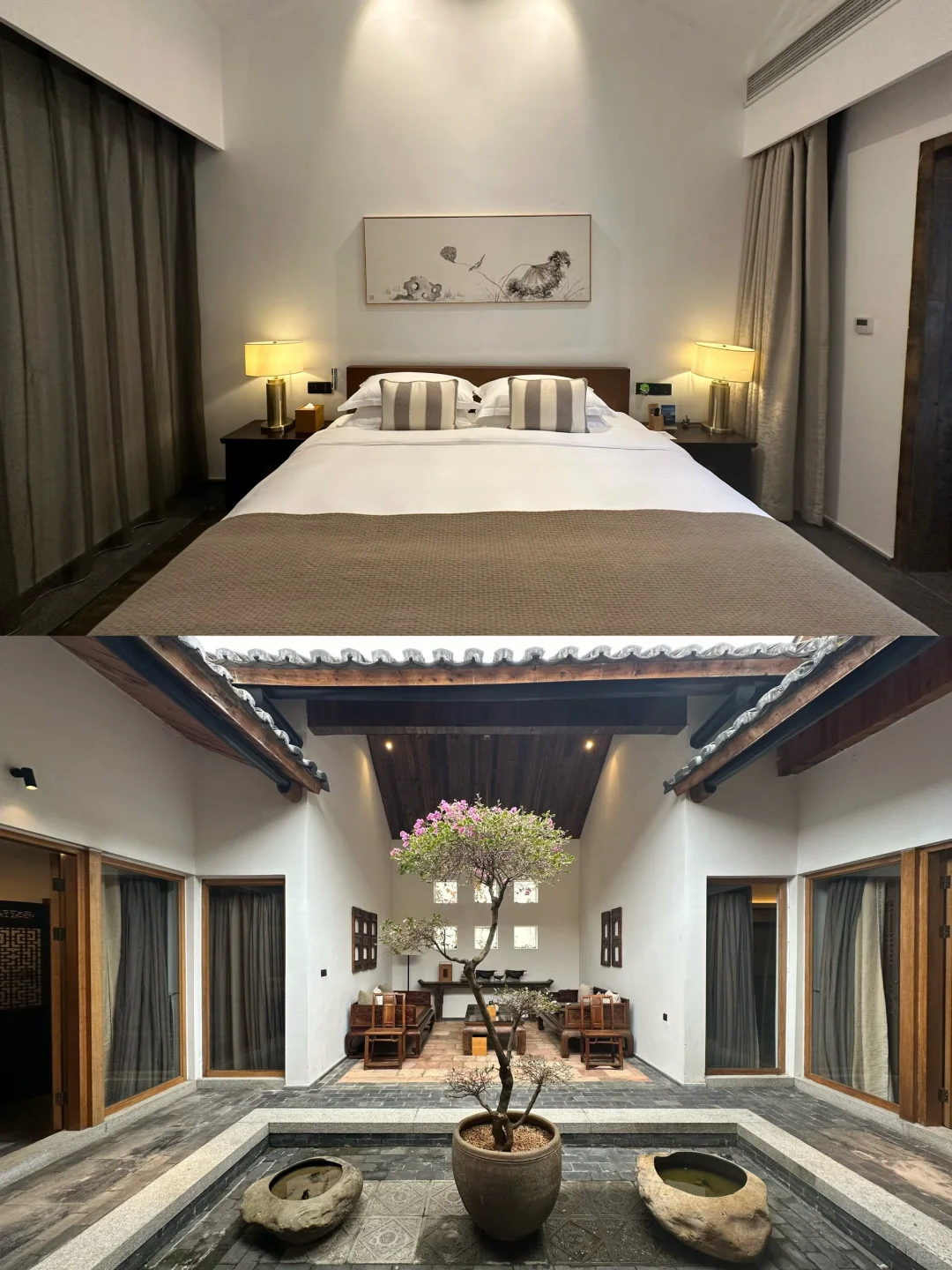 🛏为了深度体验,特地选了客家风情套房,两房分布在户外庭院两边,中间的天井于大厅设计很有年代感,随处可见客家风情元素,真有有种穿越感!