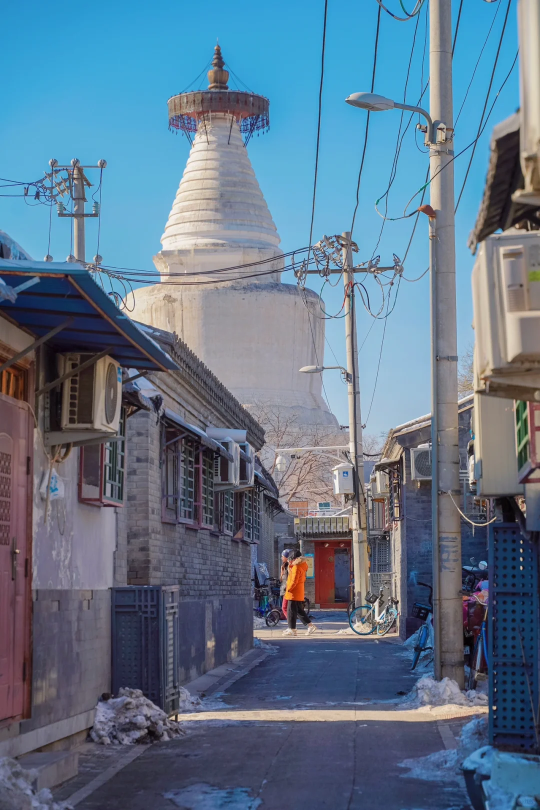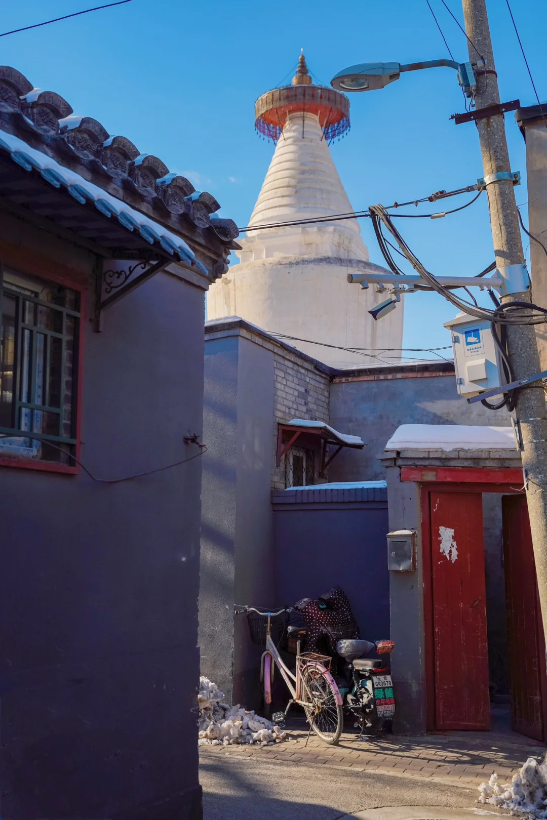 市井烟火下的北京老胡同,白塔更为鲜明。