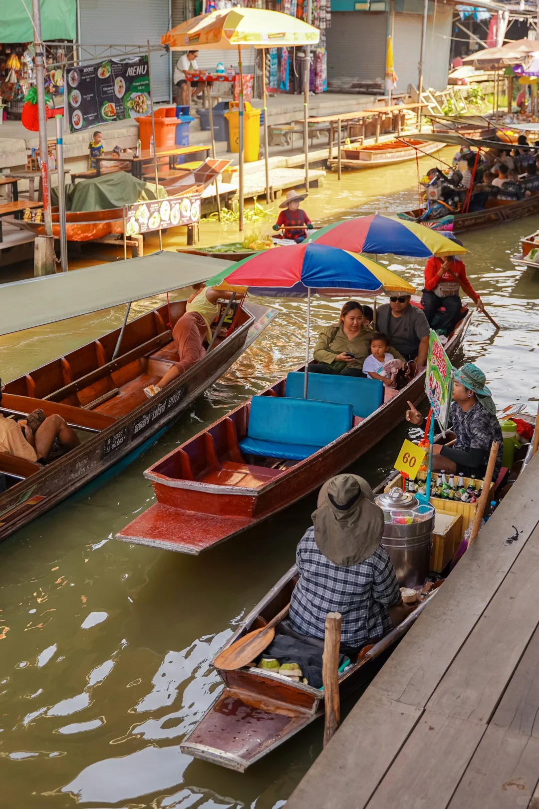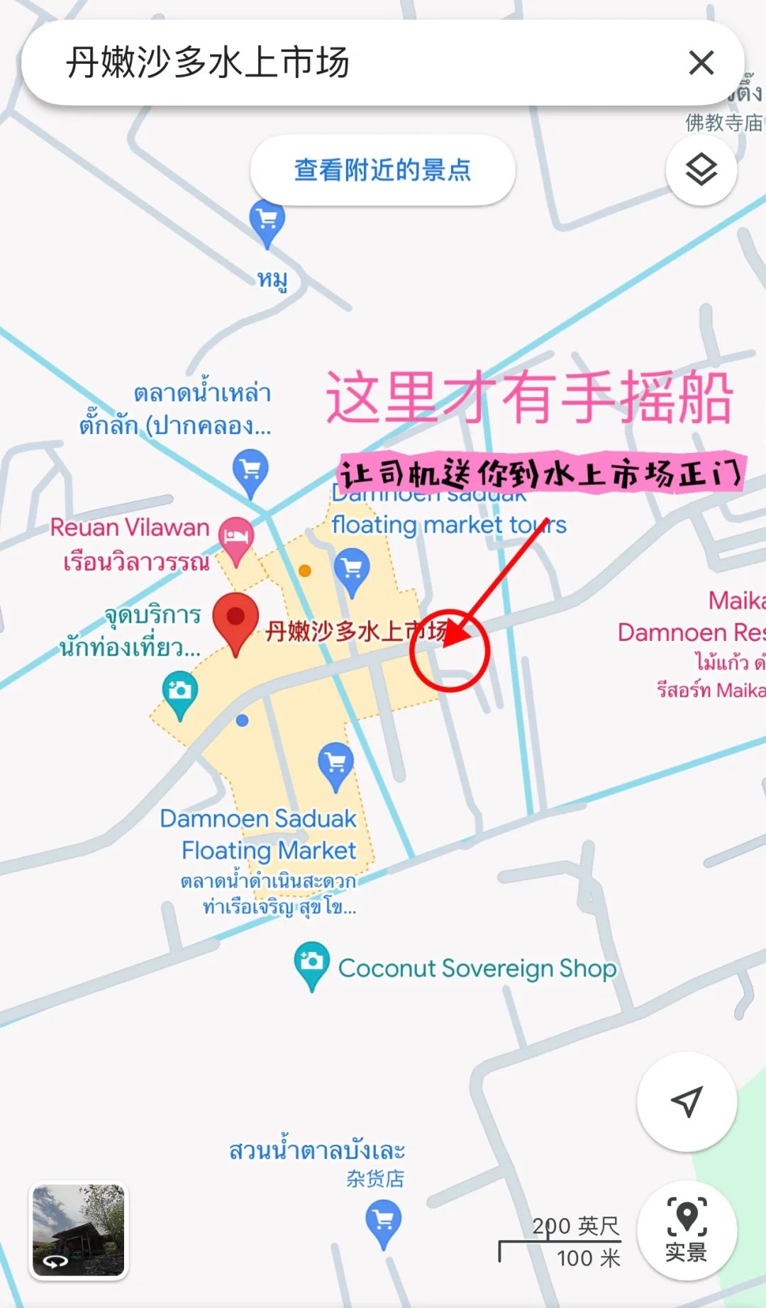 👉🏻包车去丹嫩沙多水上市场必须让包车司机带你去市场正门,那里才有手摇船,(地图标记参考图10)不然他们会带你去另一个区域坐电动船,一船2000thb,市场正门手摇船几百thb会便宜很多,手摇船也更有特色!