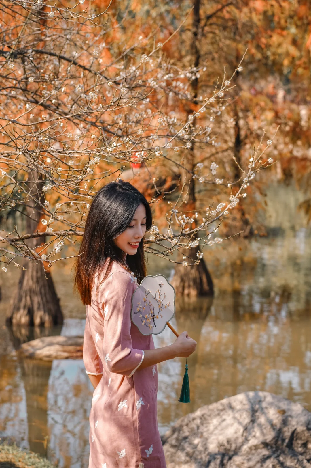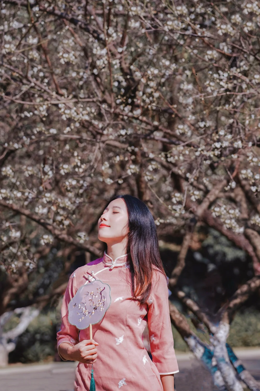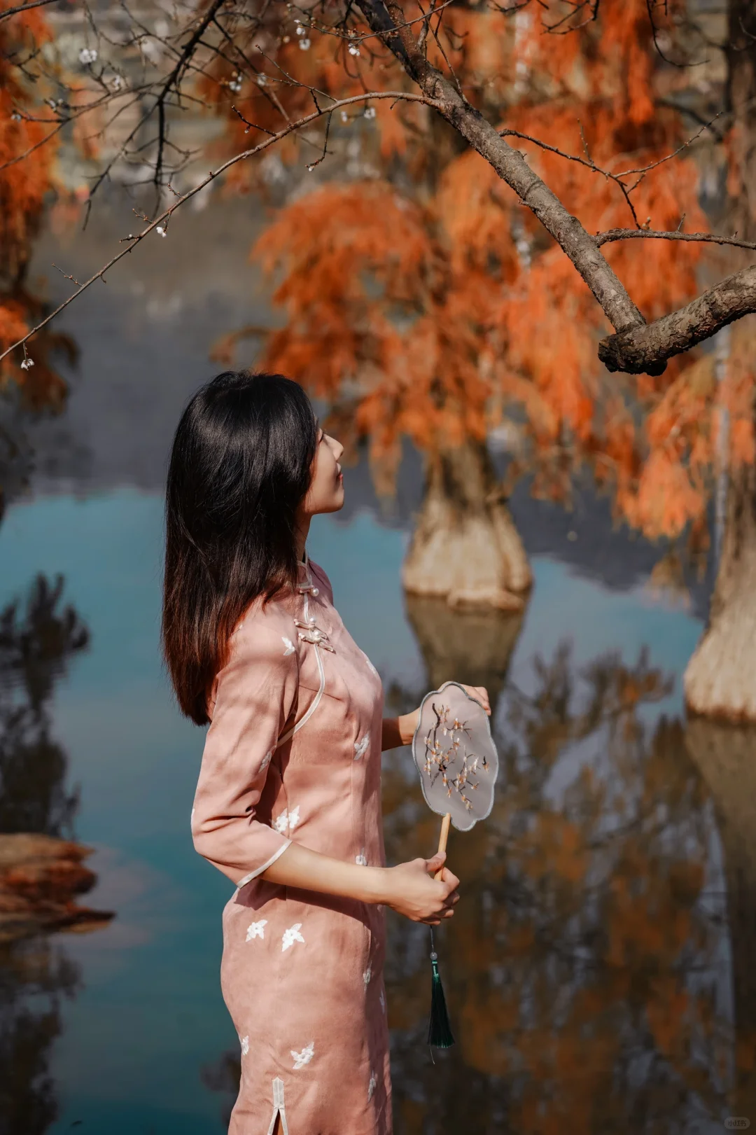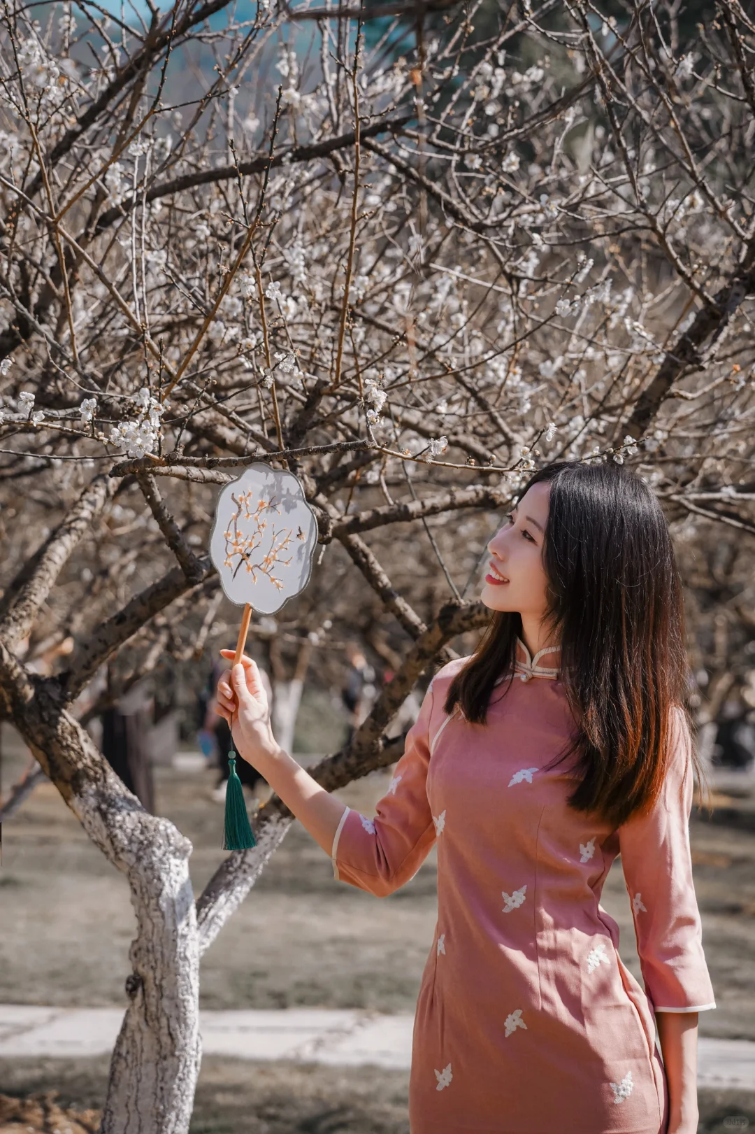 也可以穿一身汉服、旗袍,留下与梅花的合影,