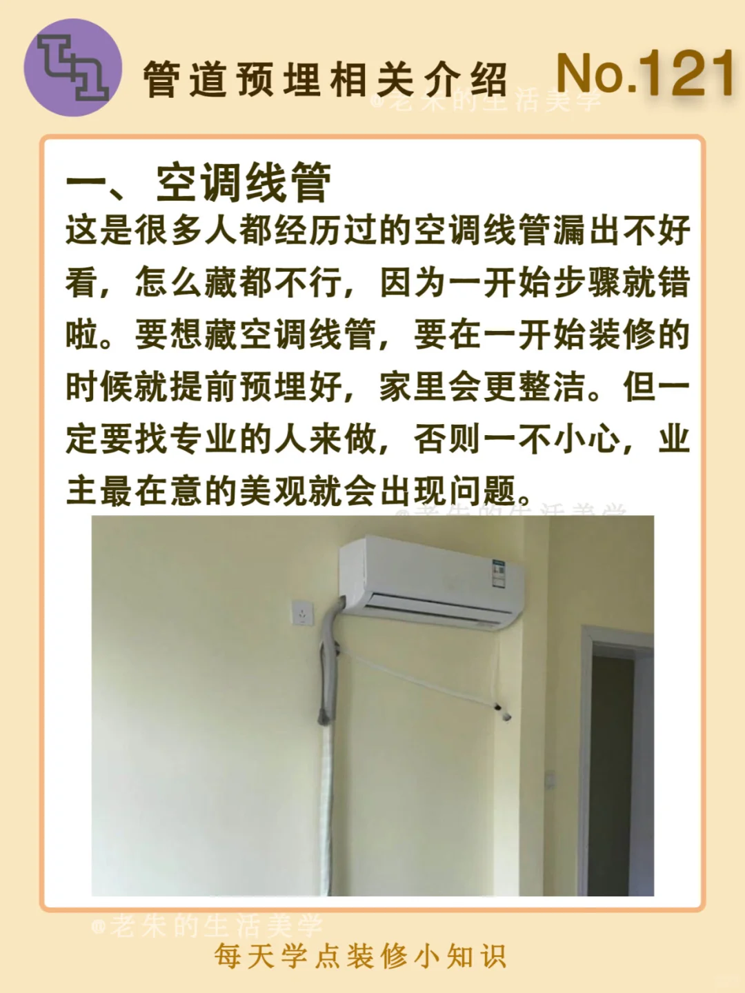 🔆 一、空调线管 二、电视机背景墙埋线 三、天然气埋线 四、卫浴埋线 五、净水器管道预埋 🔆 我是老朱 📍坐标天津 前上市公司金牌工长🏅 30年施工经验🛠 承接天津新房装修/老房改造 精心整理关于设计&施工&装修的攻略📝 关注我每日更新🗓 也可以在评论区留下您宝贵的想法与建议💓 让您装修不走弯路✅