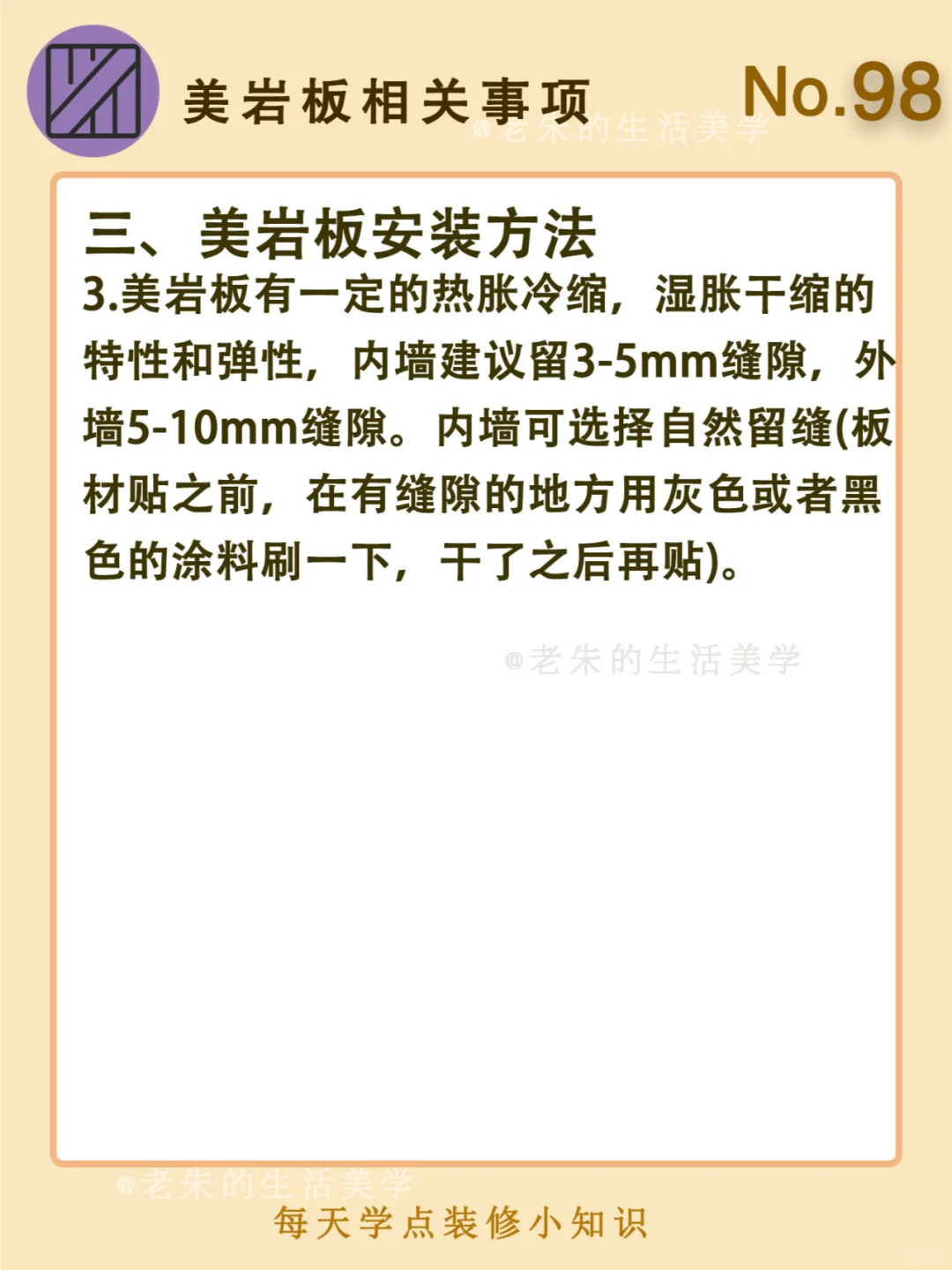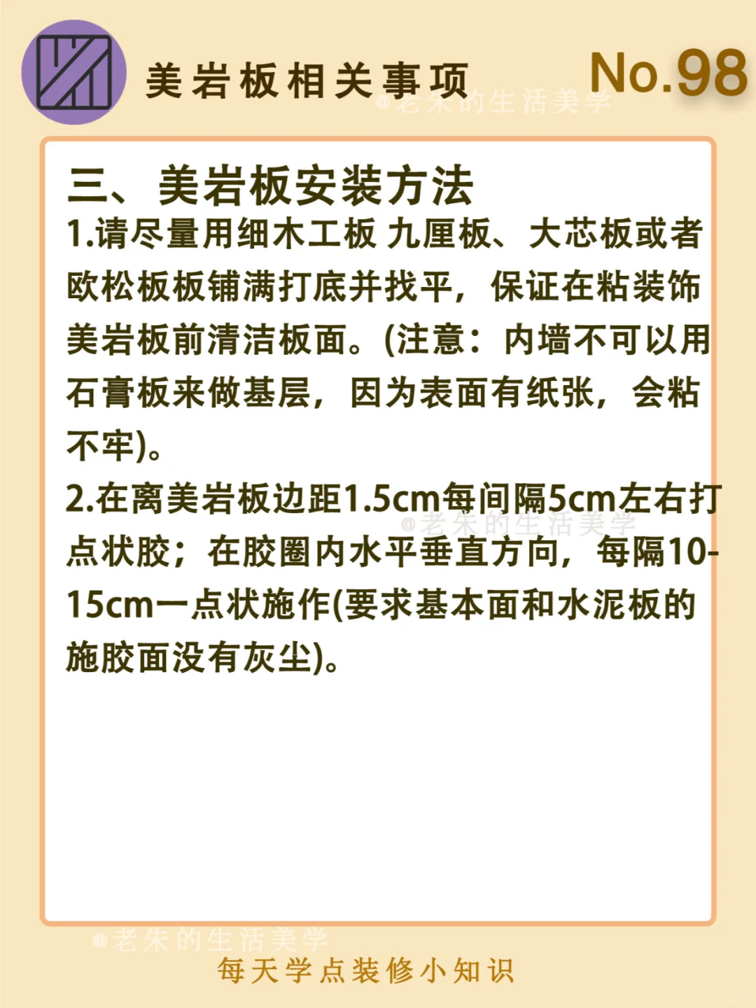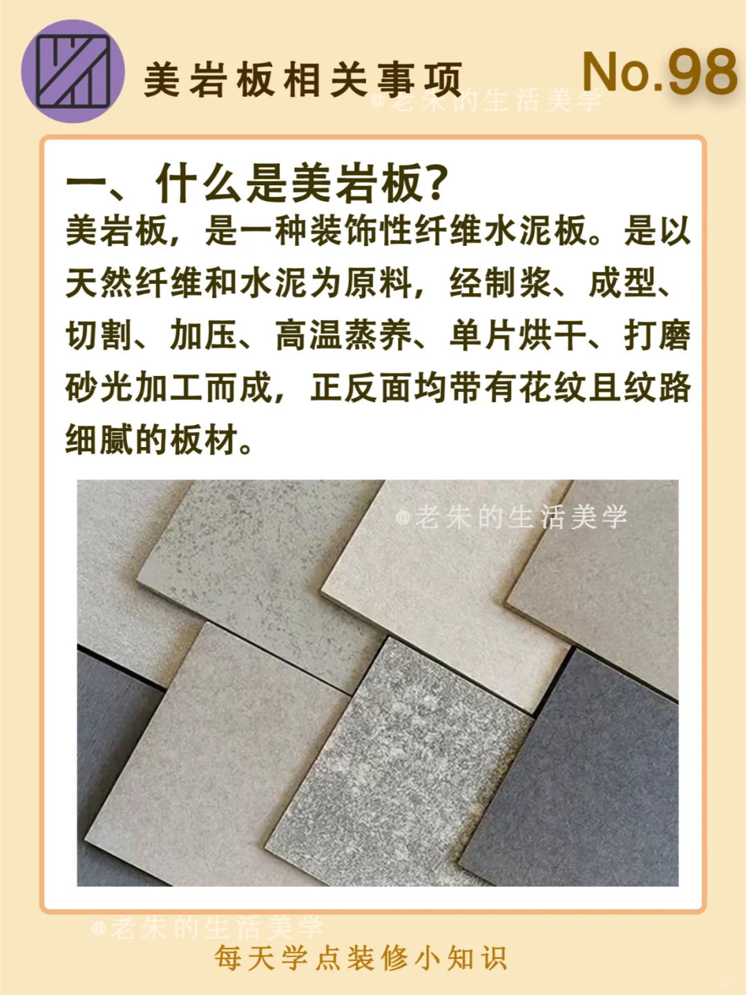 🔆 一、什么是美岩板 二、美岩板的特点 三、美岩板安装方法 四、美岩板注意事项 🔆 我是老朱 📍坐标天津 前上市公司金牌工长🏅 30年施工经验🛠 承接天津新房装修/老房改造 精心整理关于设计&施工&装修的攻略📝 关注我每日更新🗓 也可以在评论区留下您宝贵的想法与建议💓 让您装修不走弯路✅