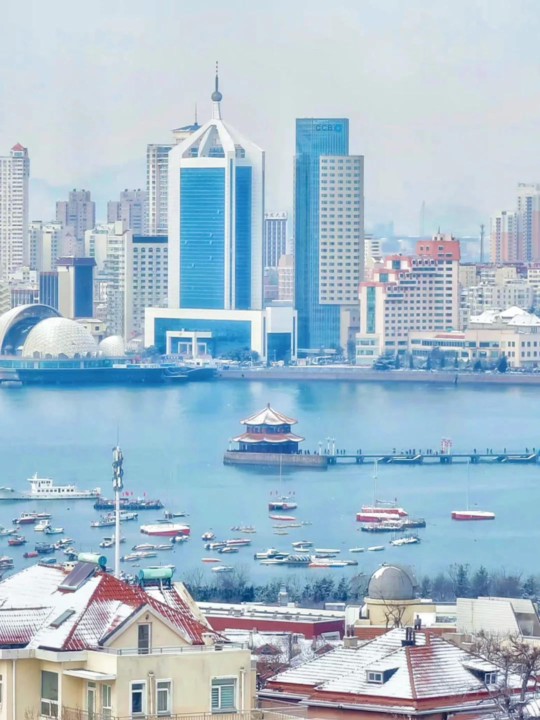 被济南、淄博下雪刷屏了❄️ 青岛市区的初雪什么时候来呀[皱眉R] · 图片拍摄于去年圣诞节 雪后的青岛老城真的好像欧洲童话镇 真的太太太美好了! · 期待青岛的第一场雪❄️ 期待栈桥的海鸥们