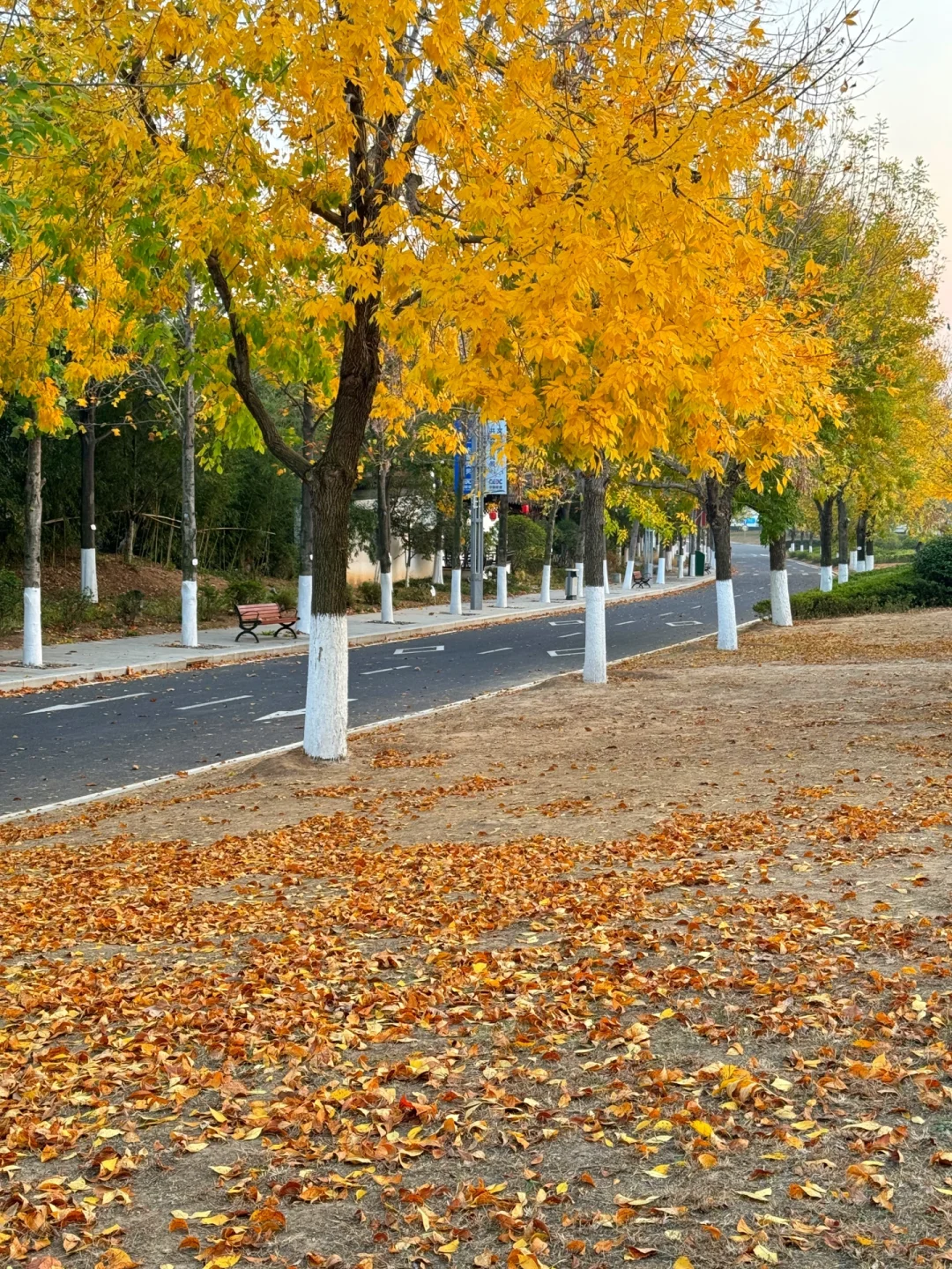 行道树都是黄色叶子的白蜡树