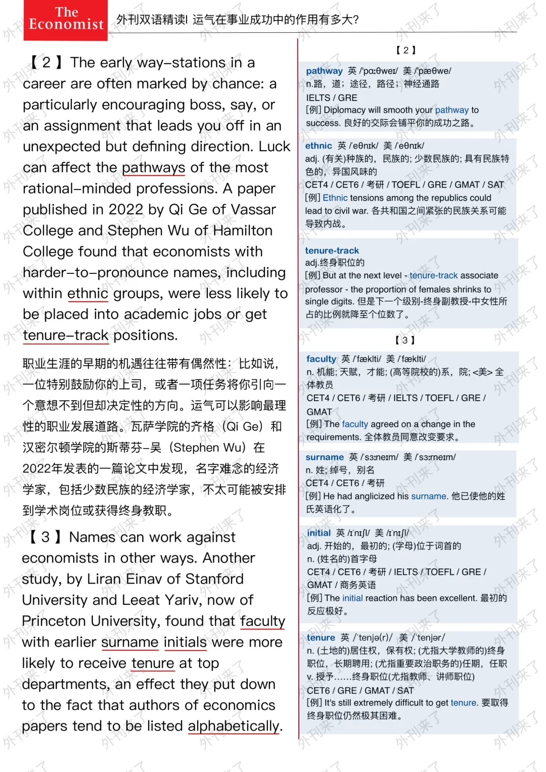 🔥英语学习必备的外刊精读 ⭐选自The Economist ⭐每周会从原刊中选取多篇文章精读 🏆🏆重点单词⤵️ 🏅unacknowledged 不被承认的 🏅discrimination 区别对待 🏅pathway 路 🏅tenure-track 终身职位的 🏅surname 姓 🏅initial 最初的 🏅alphabetically 照字母顺序排列地 🏅asset 有利条件