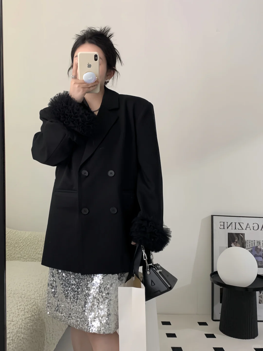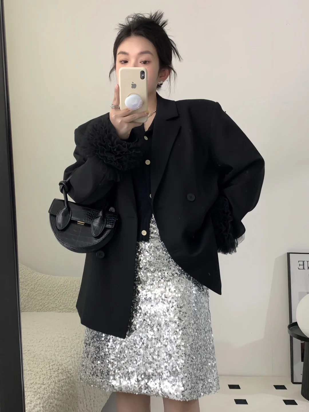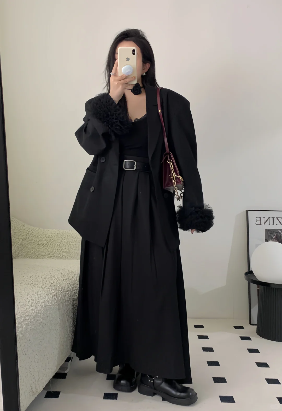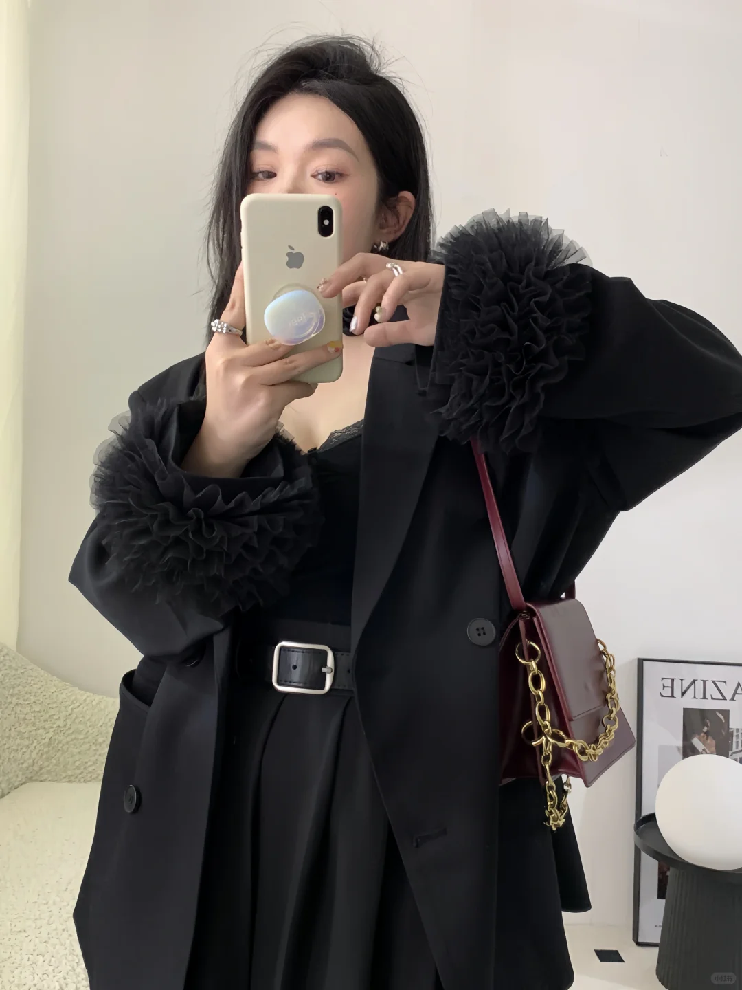 尝试一个新look 显瘦穿搭 每日穿搭 微胖女孩穿搭 ootd每日穿搭 黑色系穿搭 春季穿搭 西装