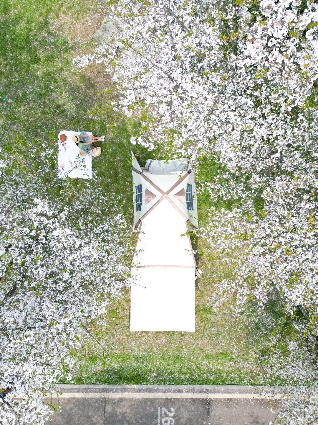 1️⃣公园现在正值樱花盛开,露营的同时还可以拍照