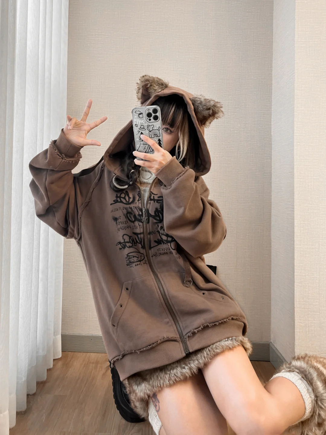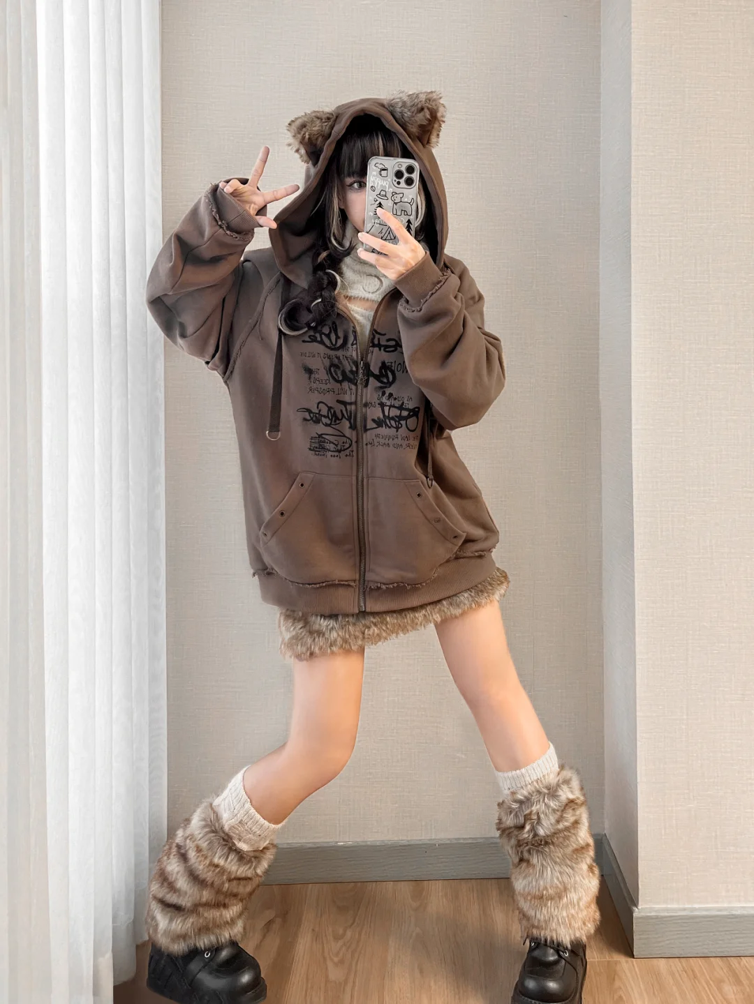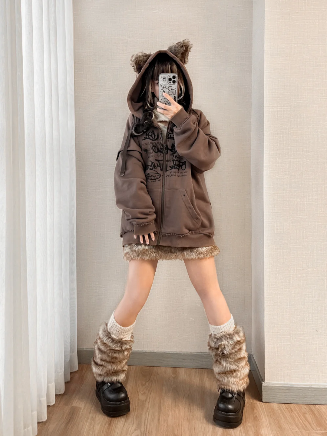 秋冬终于可以穿毛茸茸啦!毛茸茸狼耳朵谁爱啦~内搭软软糯糯好舒服,搭配毛毛边的短裙是要辣si谁!