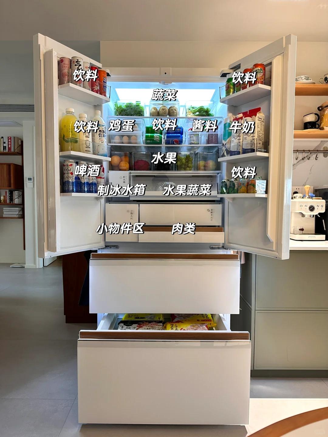 1⃣️清楚了解自己家冰箱的结构尺寸和容量进行分区
