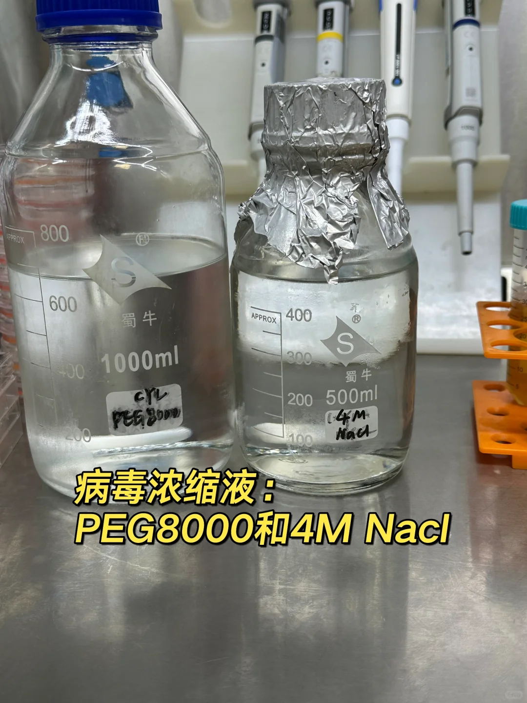 PEG8000➕4M Nacl 浓缩,20ml病毒原液➕5.5ml PEG8000和2ml 4M Nacl。